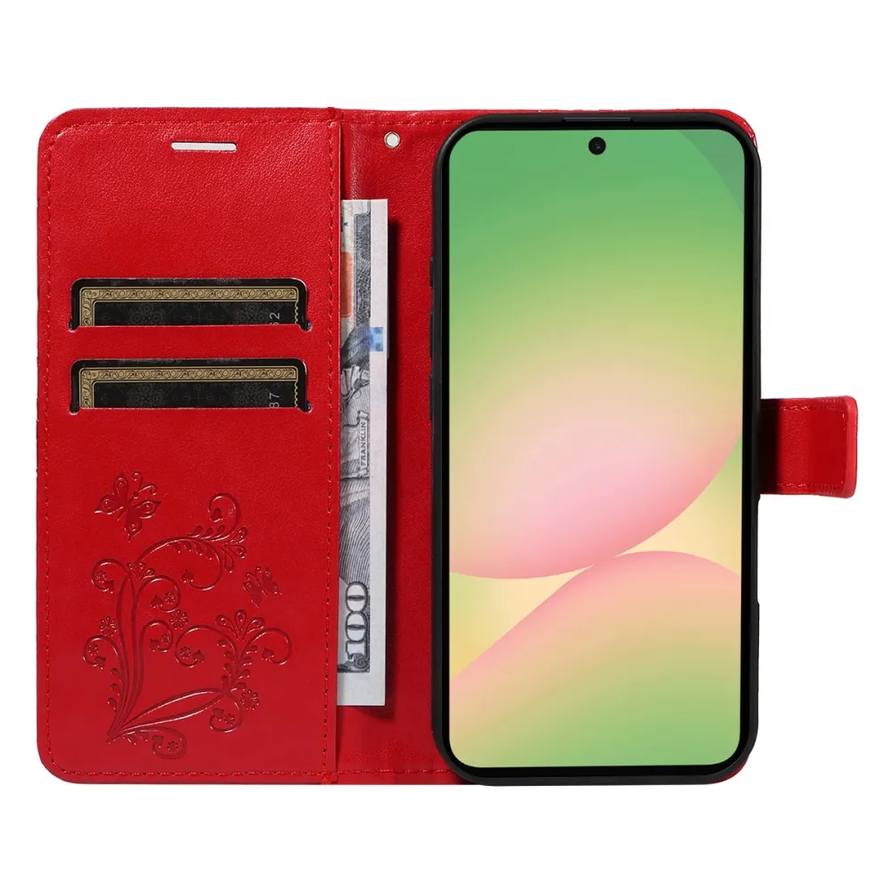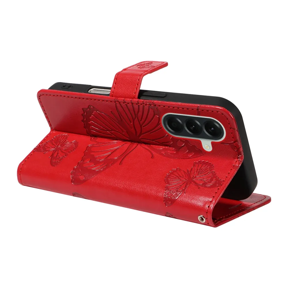 Piros pénztárca tok Nagy pillangó Samsung Galaxy A57 5G számára