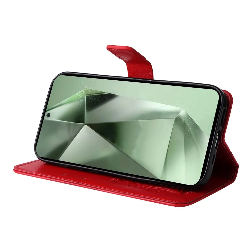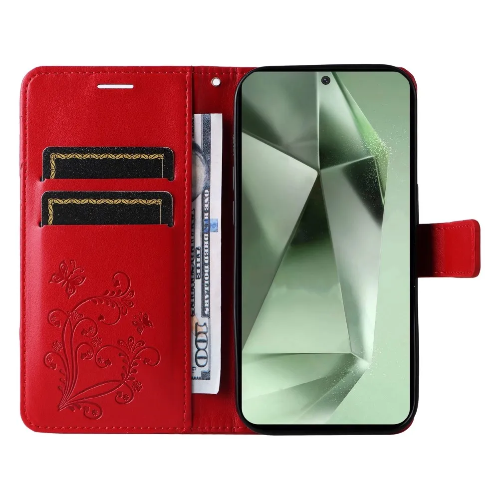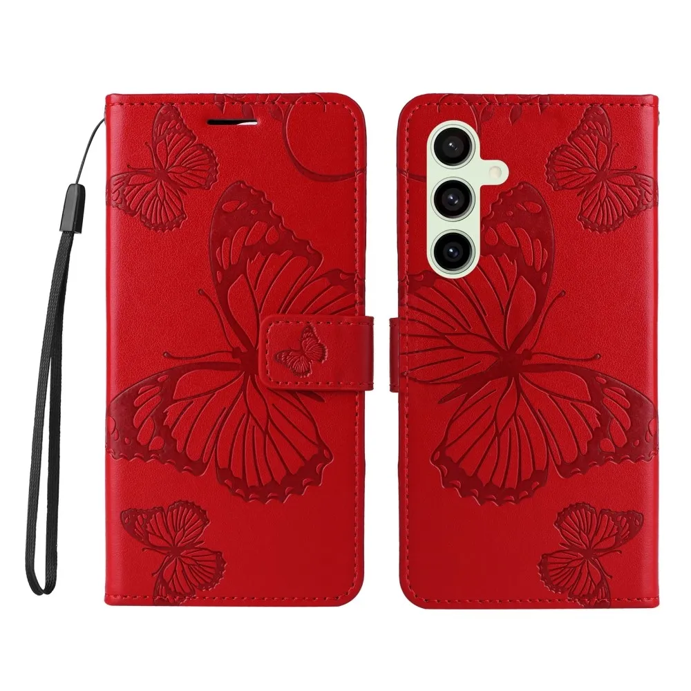 Piros pénztárca tok Nagy pillangó Samsung Galaxy S24 FE számára