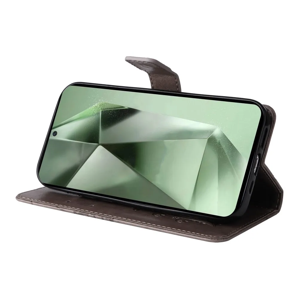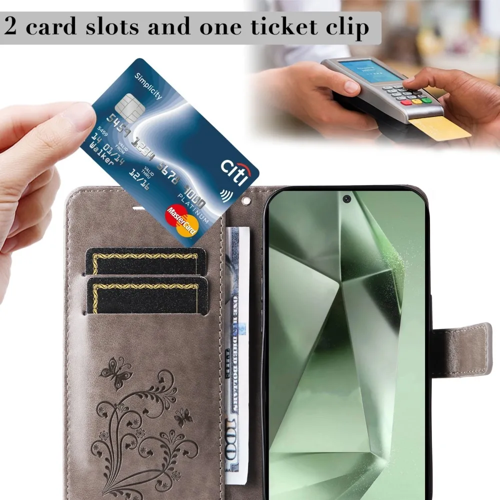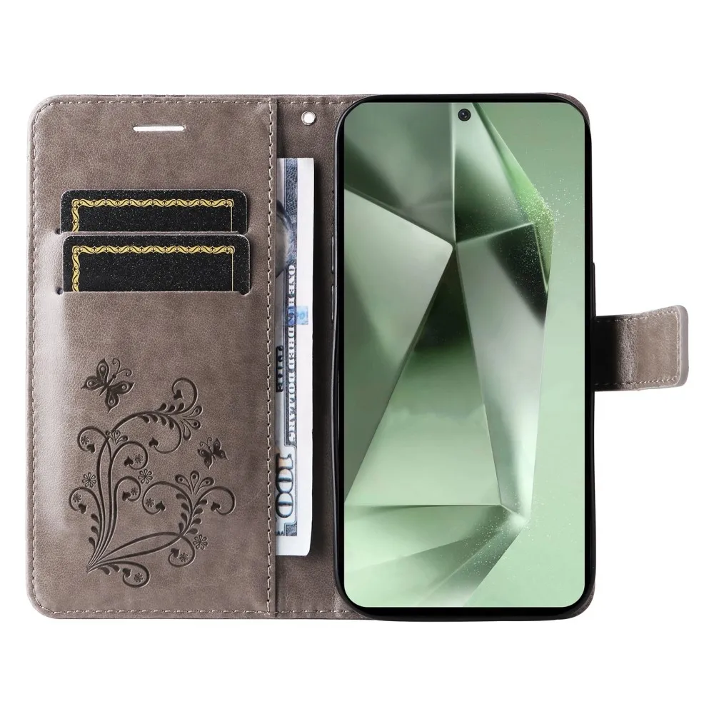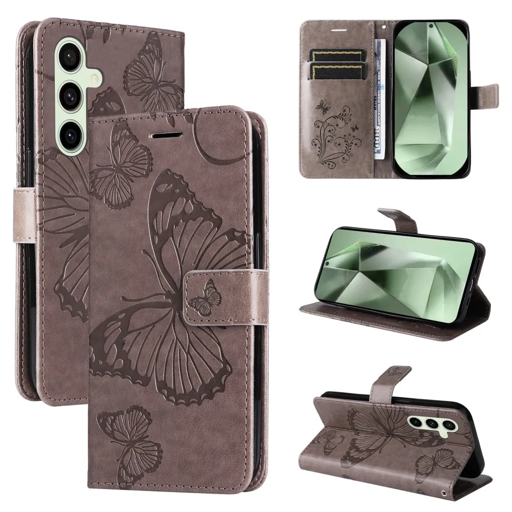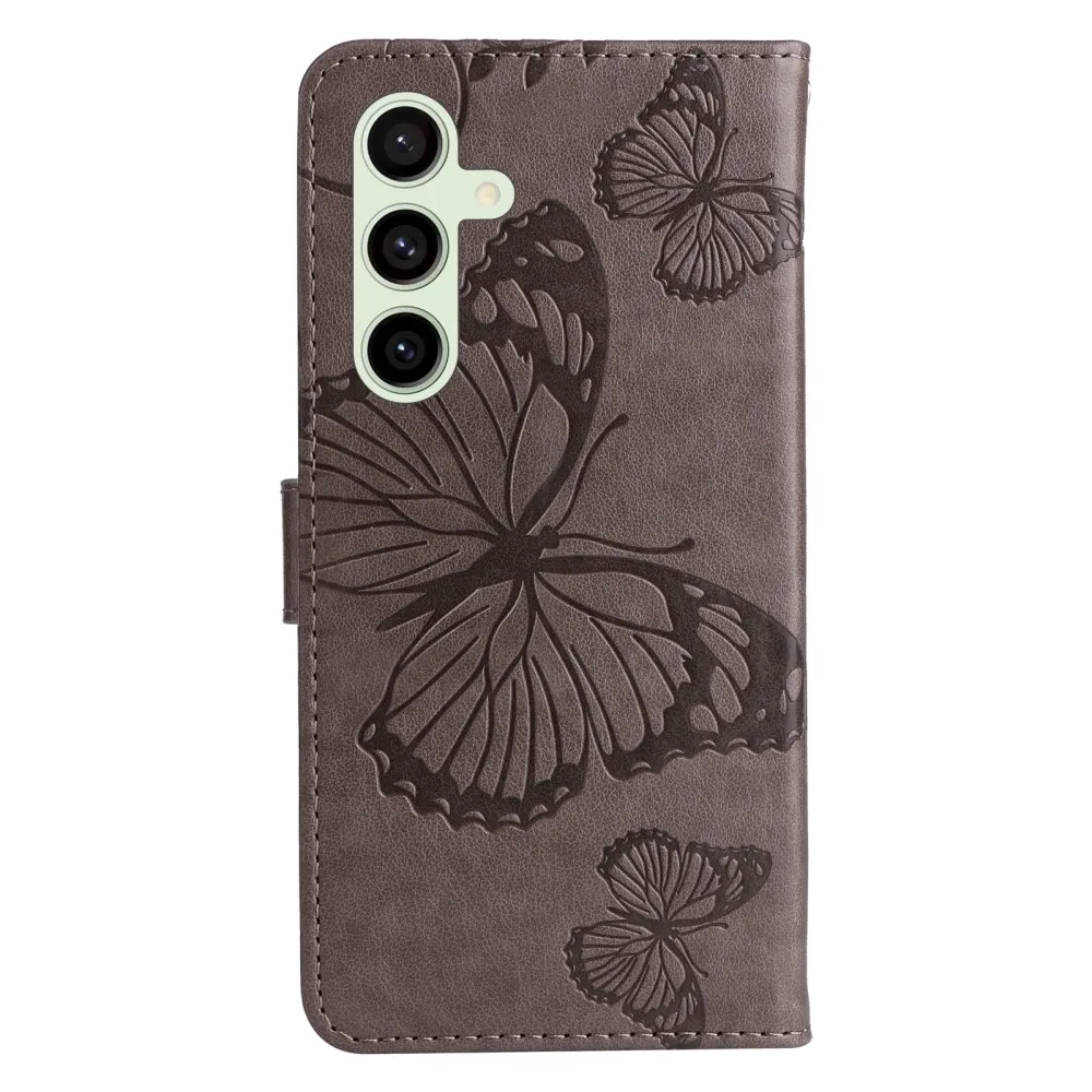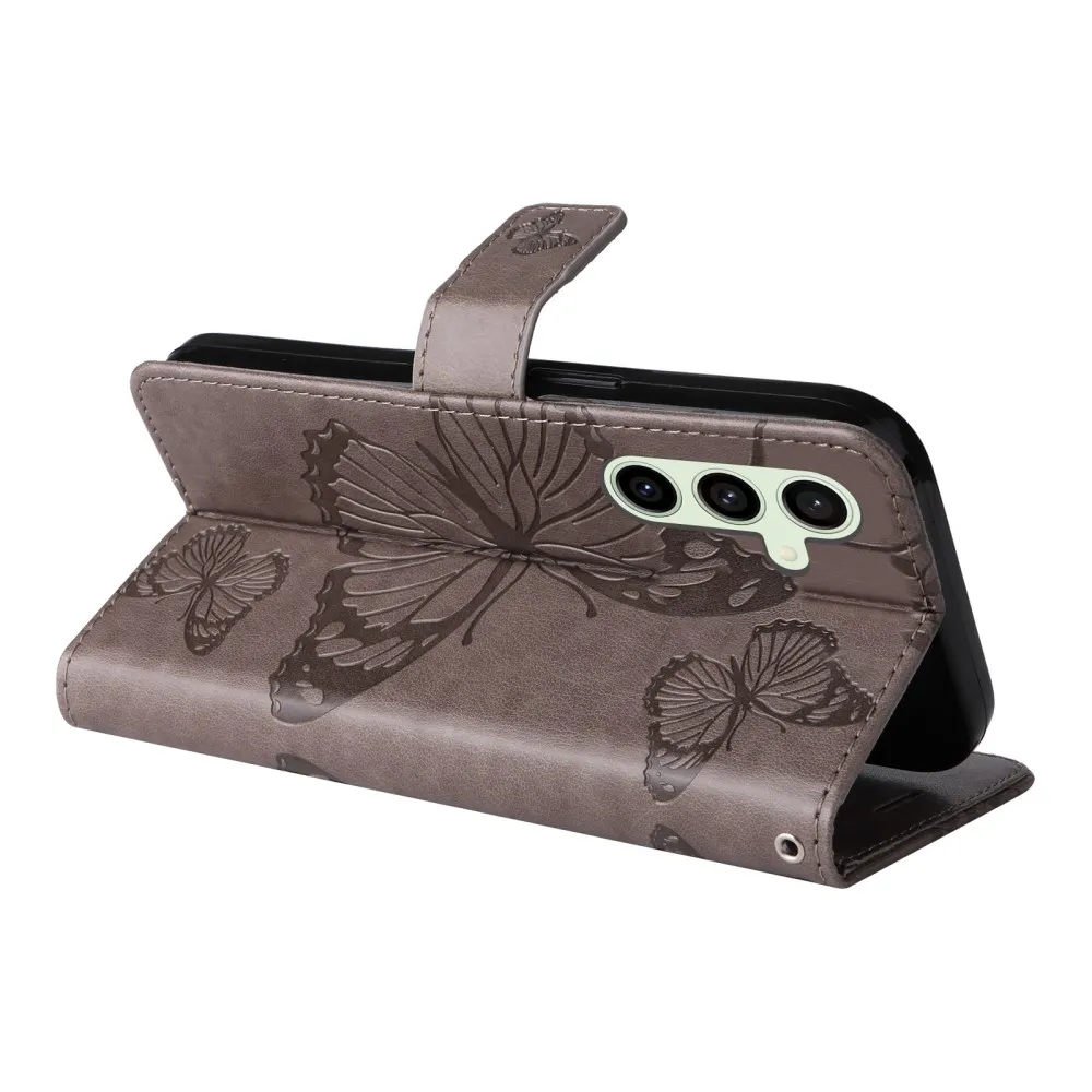 Szürke pénztárca tok Nagy pillangó Samsung Galaxy S24 FE készülékhez