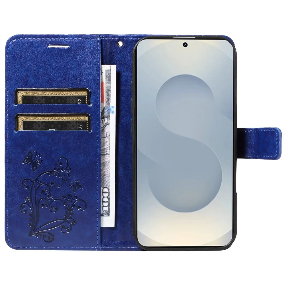 Kék pénztárca tok Nagy pillangó Samsung Galaxy S25 Edge számára