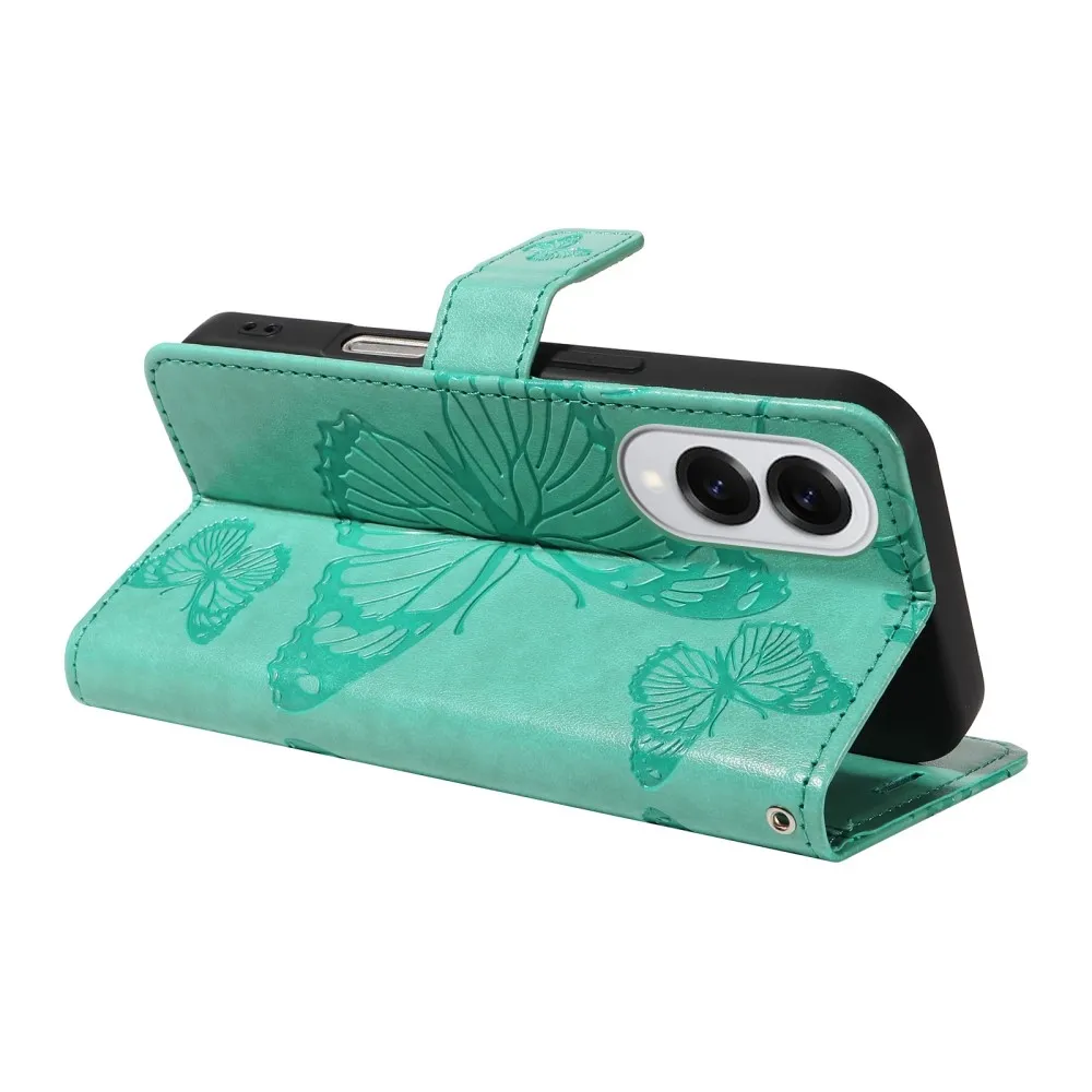 Kék-zöld pénztárca tok Nagy pillangó Samsung Galaxy S25 Edge-hez