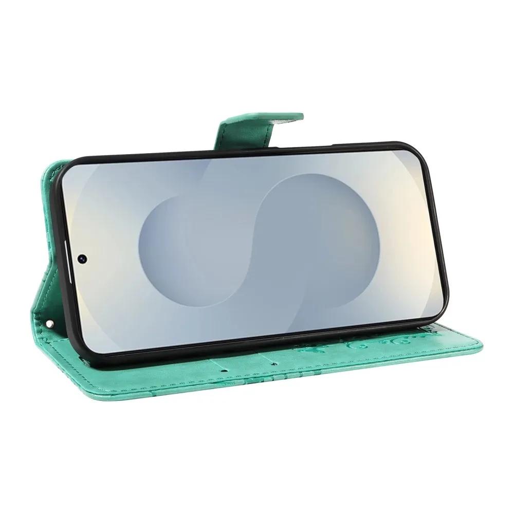 Nagy pillangó könyv tok Samsung Galaxy S25 Edge készülékhez - kékeszöld színű