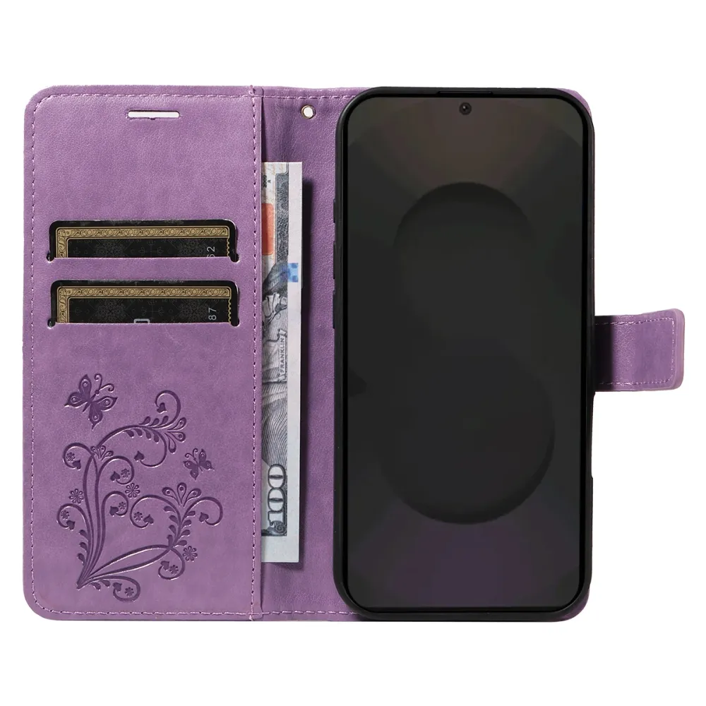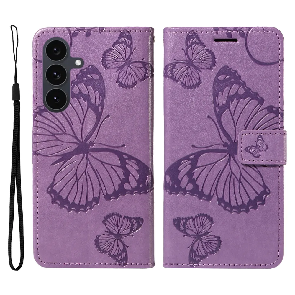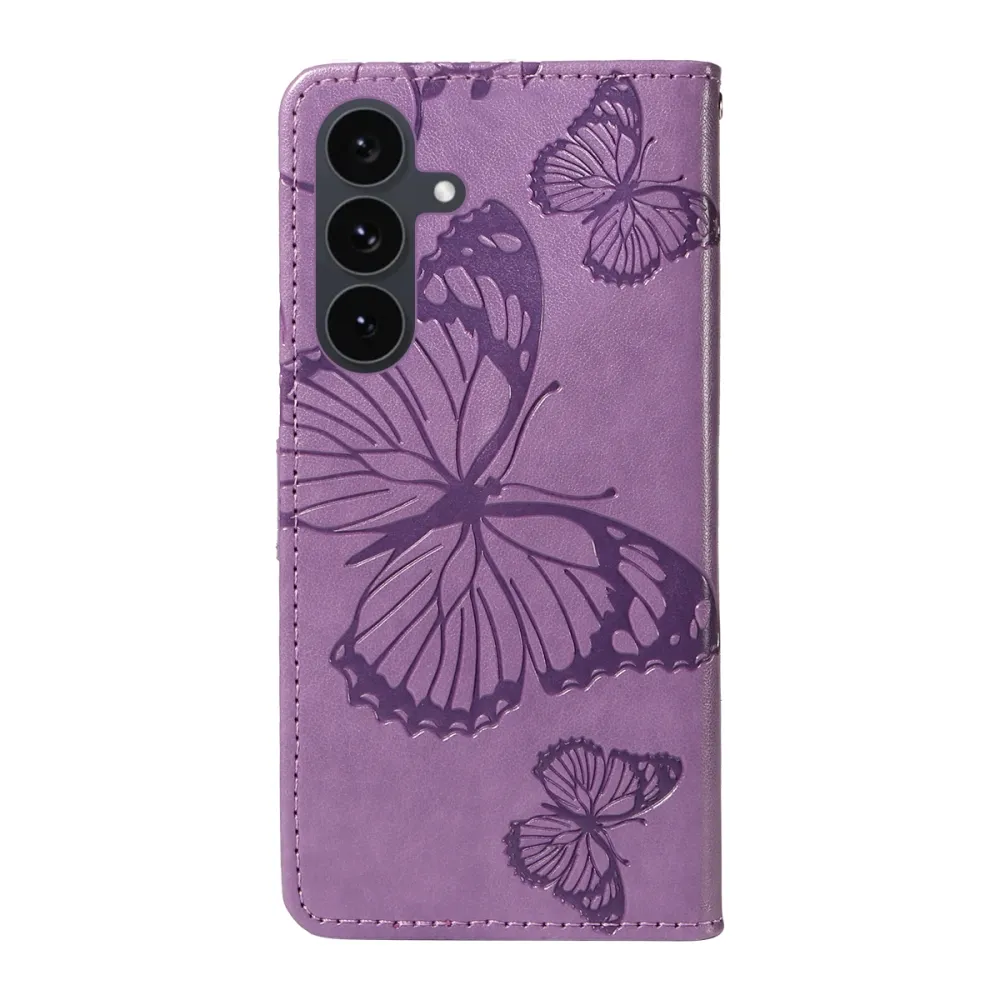 Lila pénztárca tok Nagy pillangó Samsung Galaxy S25 FE számára