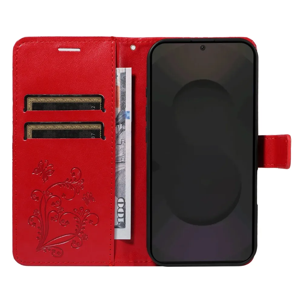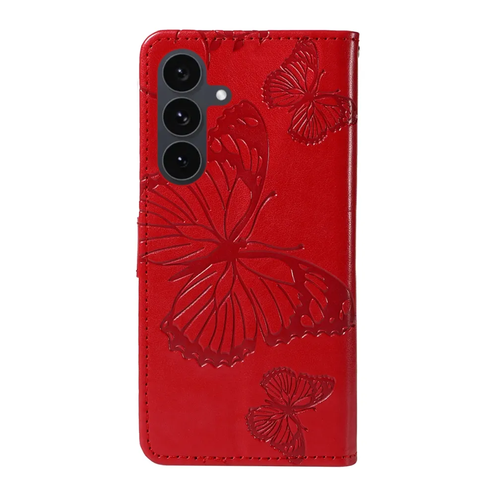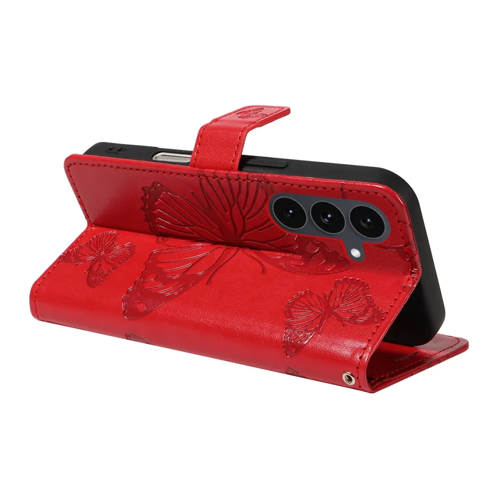 Piros pénztárca tok Nagy pillangó Samsung Galaxy S25 FE számára