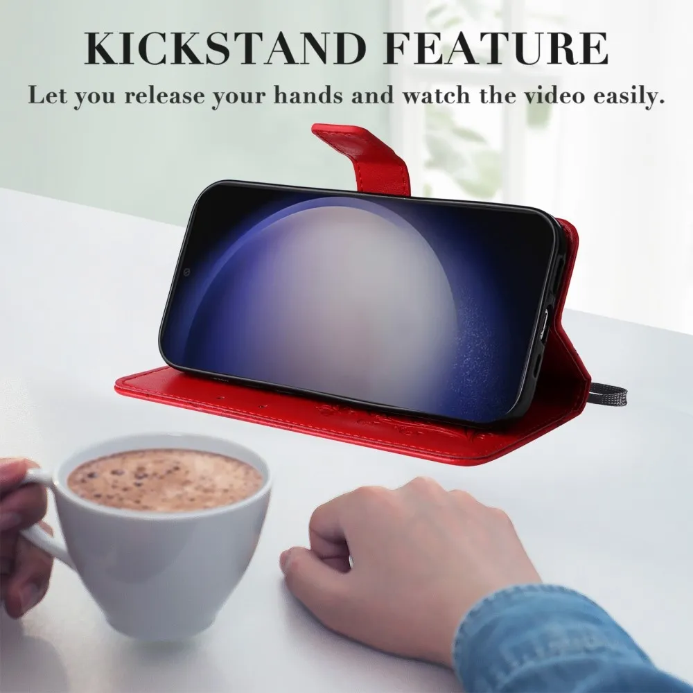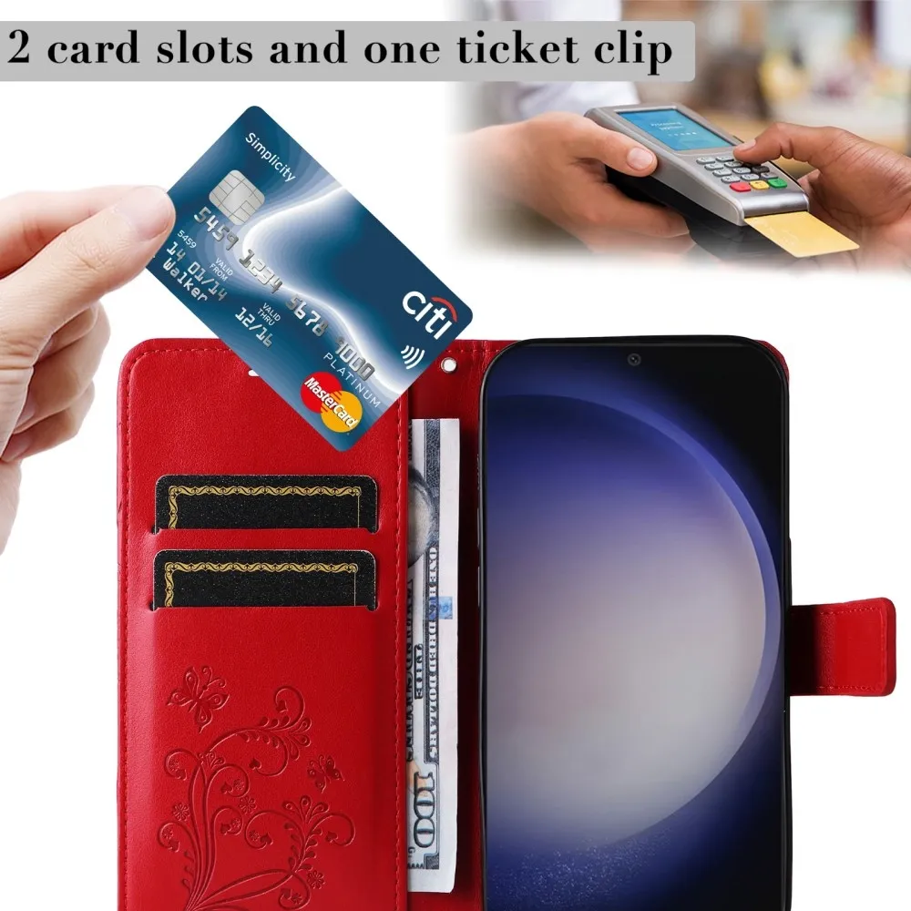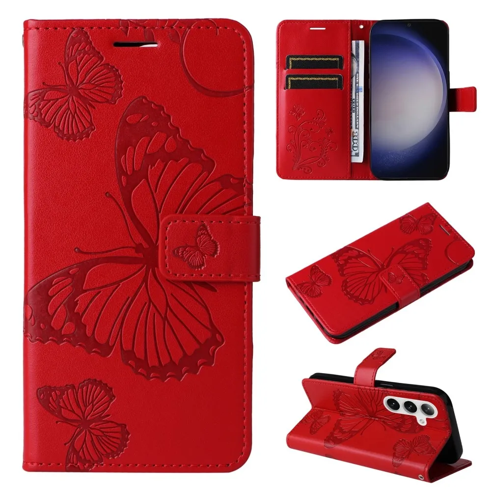 Piros pénztárca tok Nagy pillangó Samsung Galaxy S25-hez