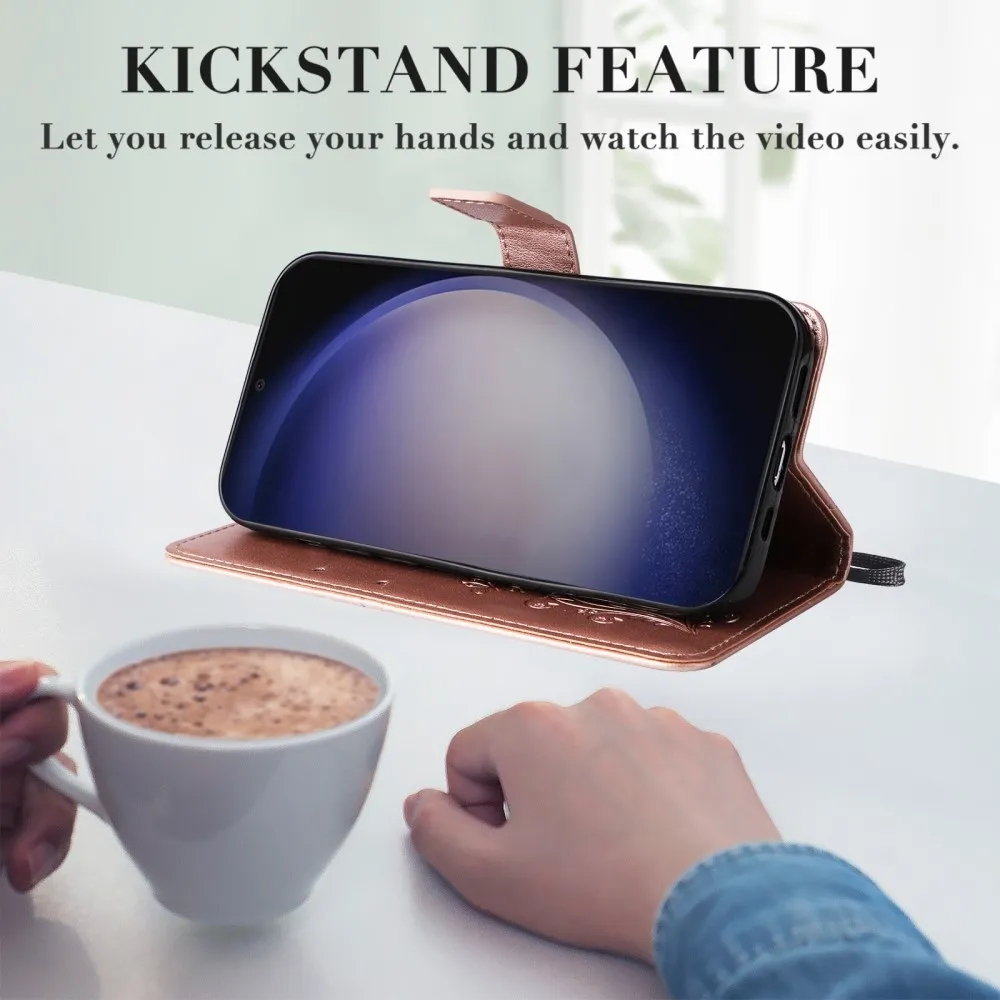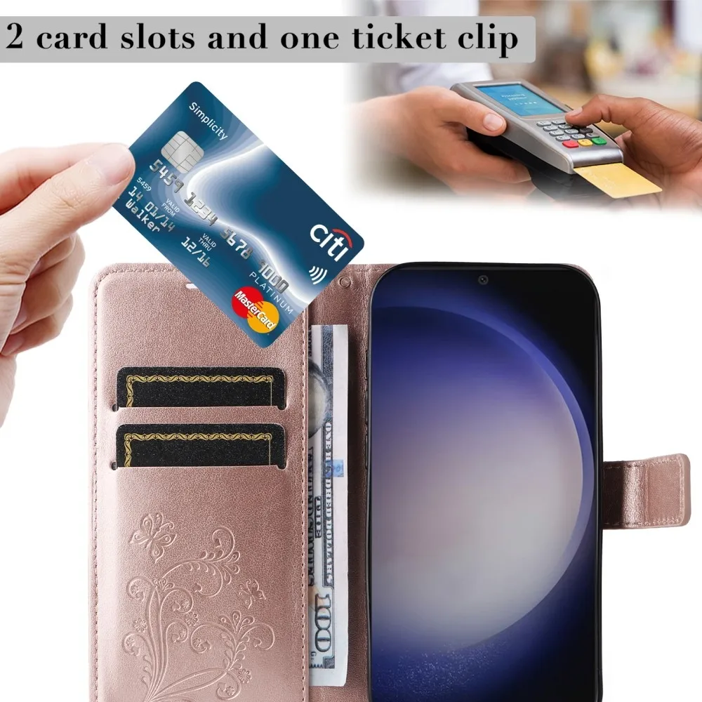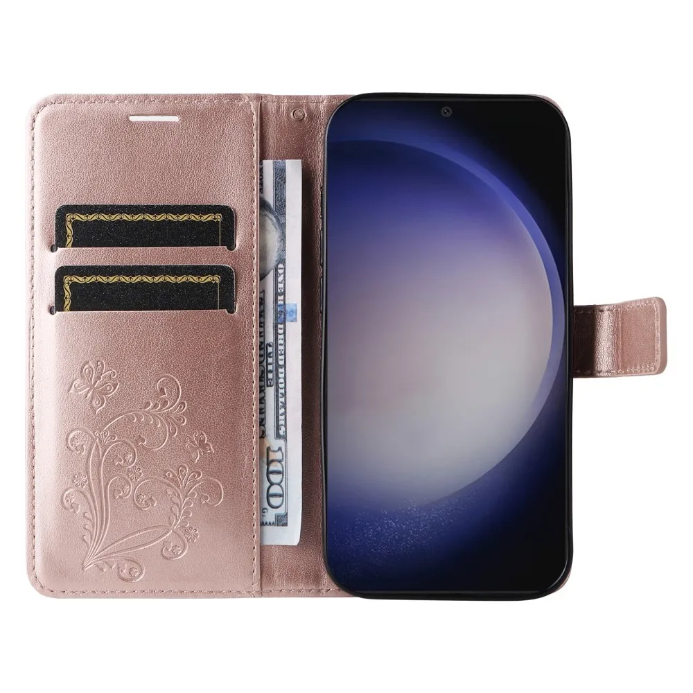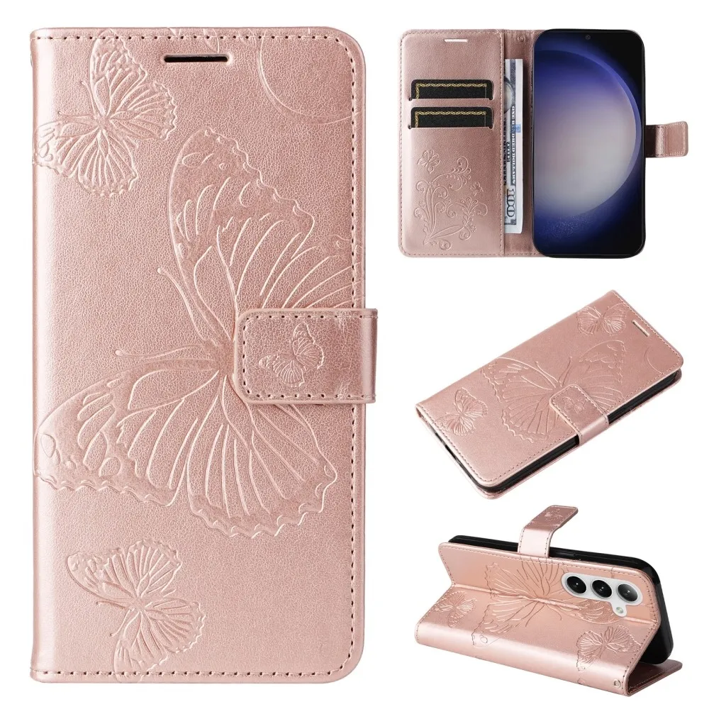 Rózsa arany pénztárca tok Big Butterfly Samsung Galaxy S25-hez