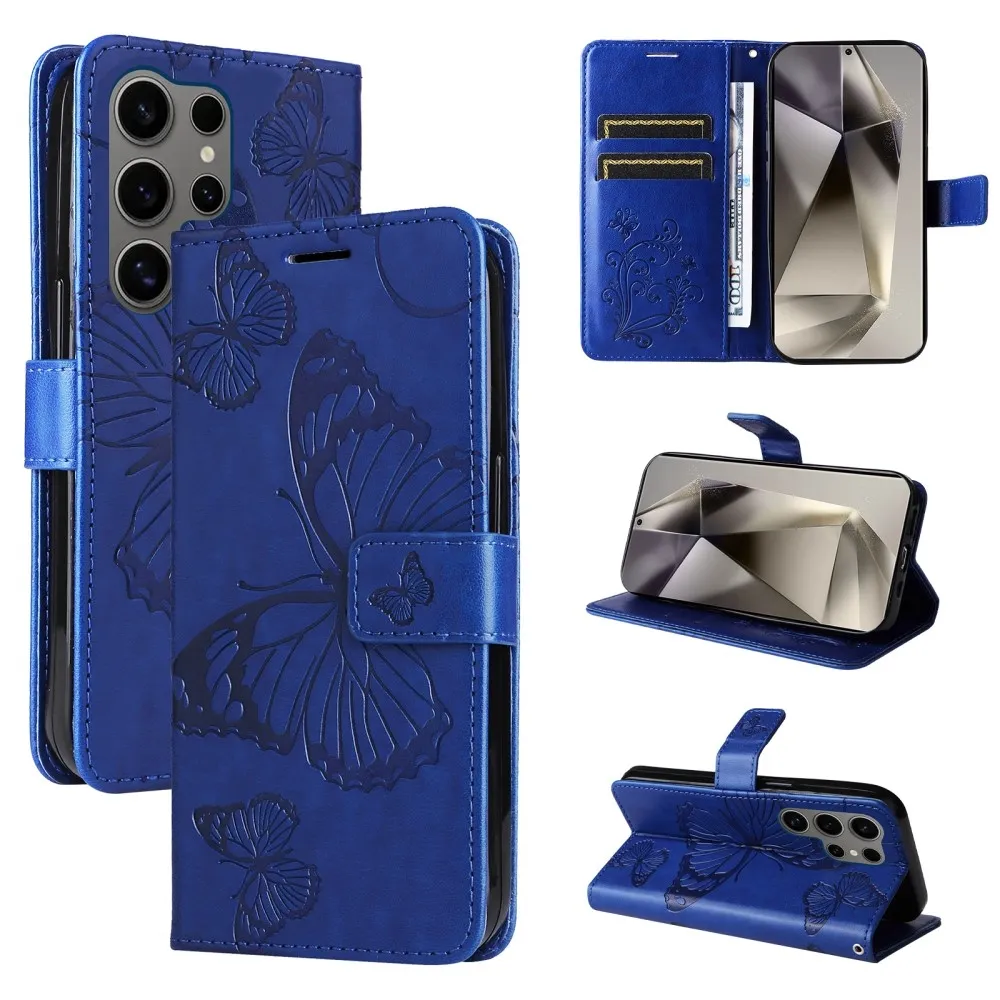 Kék pénztárca tok Nagy pillangó Samsung Galaxy S25 Ultra számára