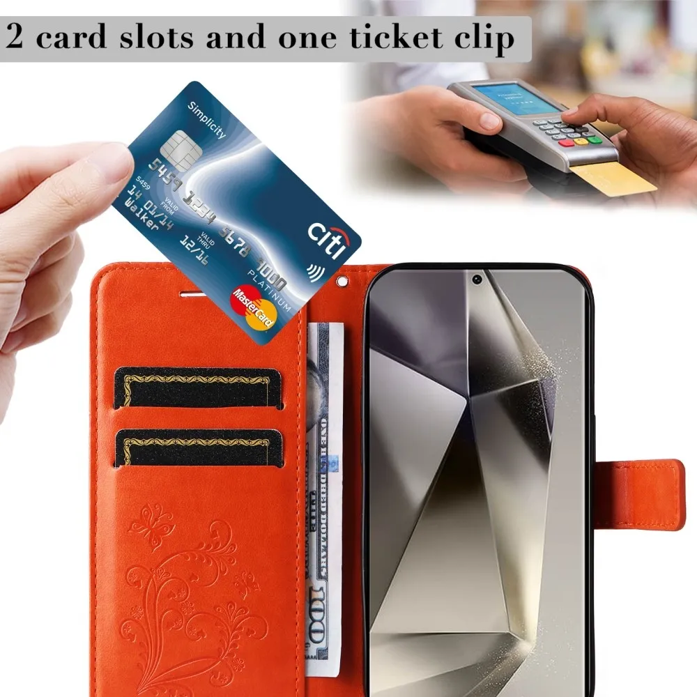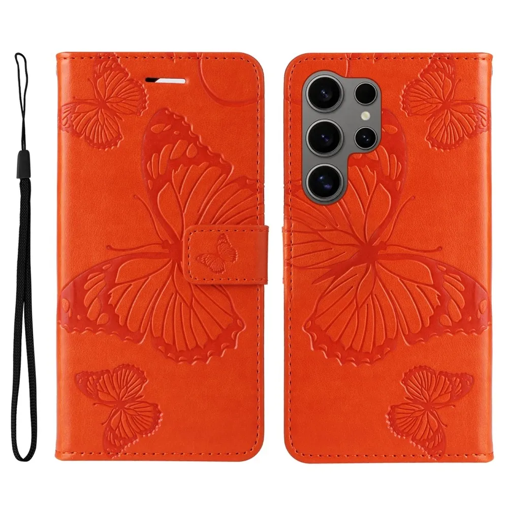 Narancssárga pénztárca tok Nagy pillangó Samsung Galaxy S25 Ultra számára