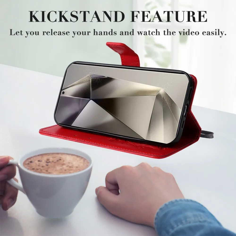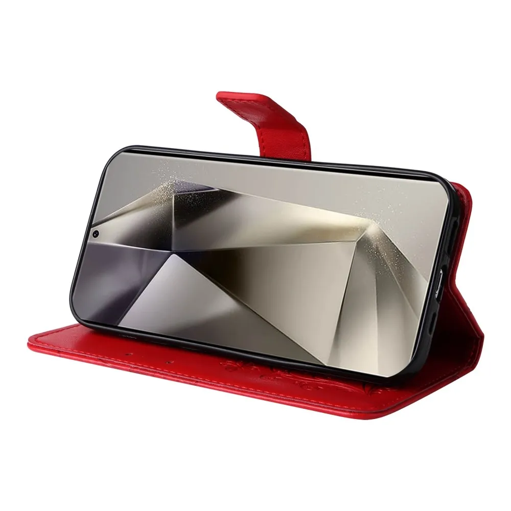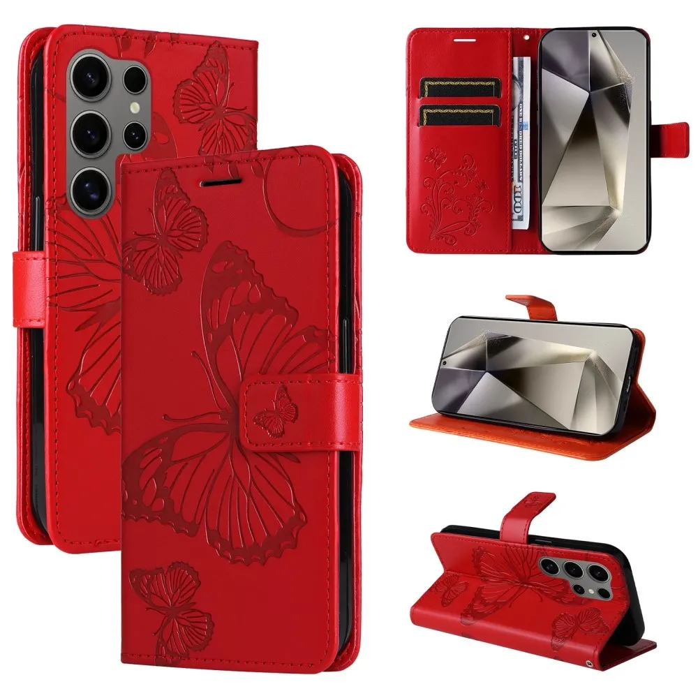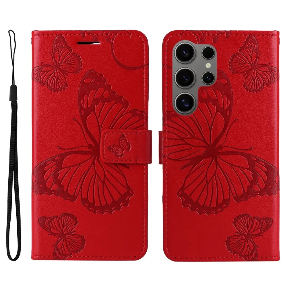 Piros pénztárca tok Nagy pillangó Samsung Galaxy S25 Ultra számára