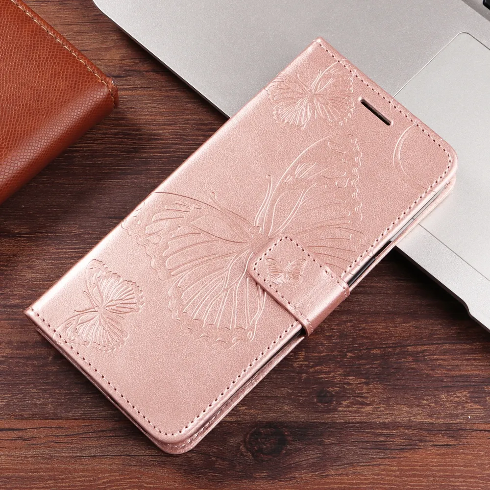 Rózsaszín és arany pénztárca tok Big Butterfly a Xiaomi 17 számára