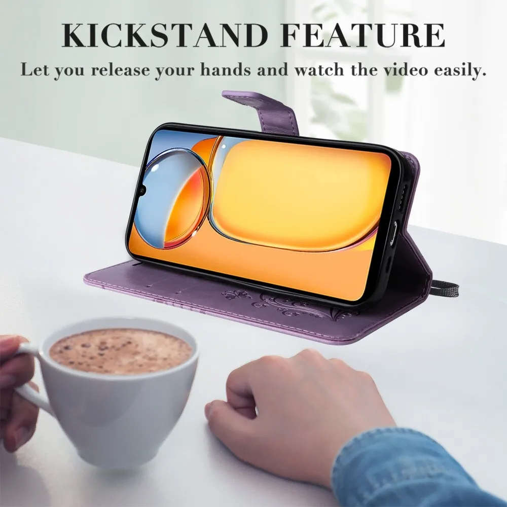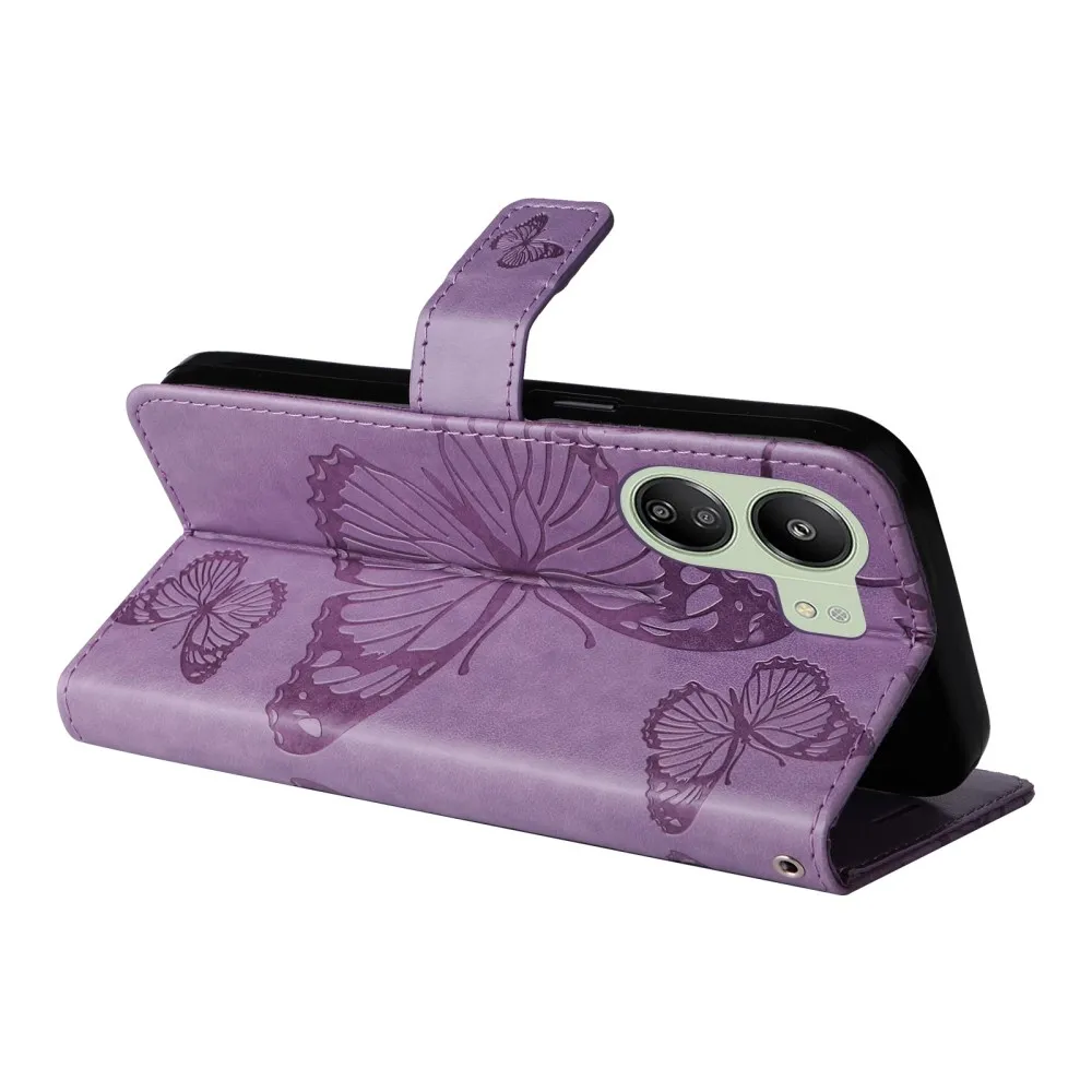 Lila pénztárca tok Nagy pillangó Xiaomi Poco C65/Redmi 13C számára