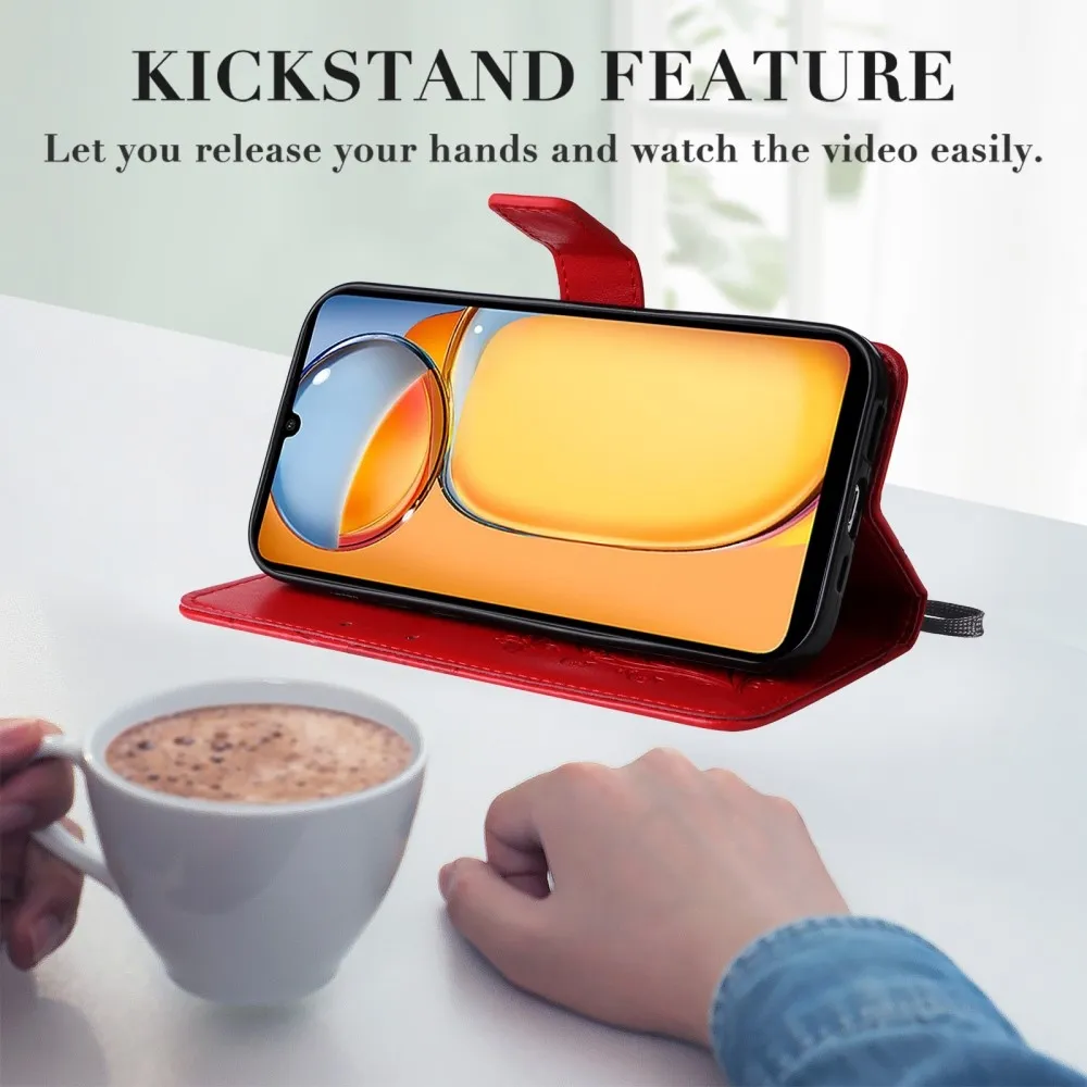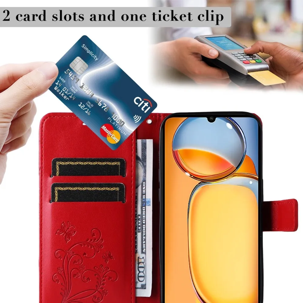 Piros pénztárca tok Nagy pillangó Xiaomi Poco C65/Redmi 13C számára