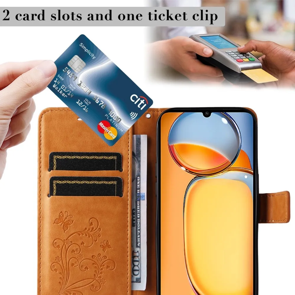 Sárga pénztárca tok Nagy pillangó Xiaomi Poco C65/Redmi 13C számára