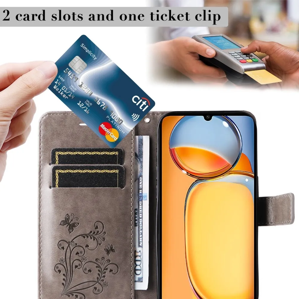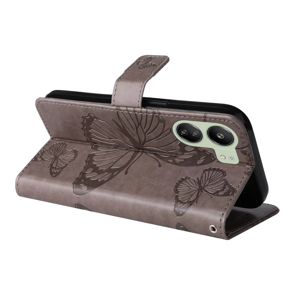 Szürke pénztárca tok Nagy pillangó Xiaomi Poco C65/Redmi 13C számára