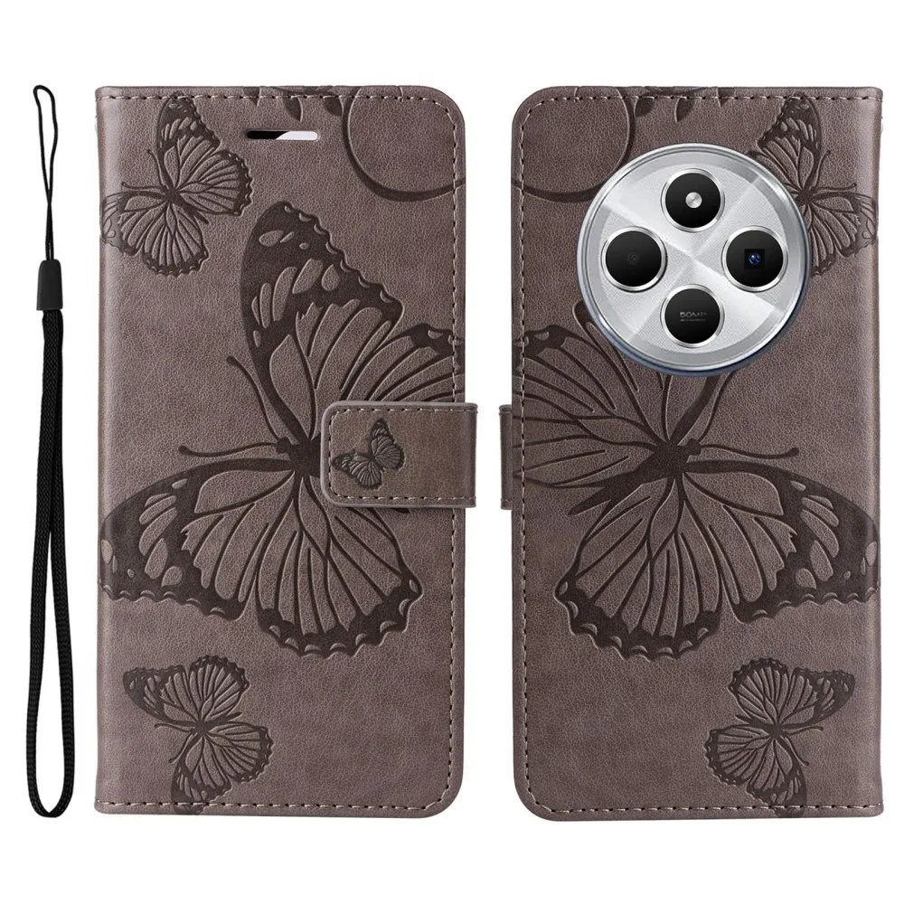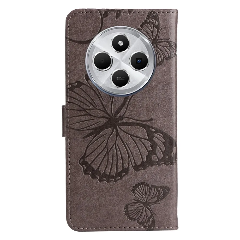 Szürke pénztárca tok Nagy pillangó Xiaomi Redmi 14C/Poco C75 számára