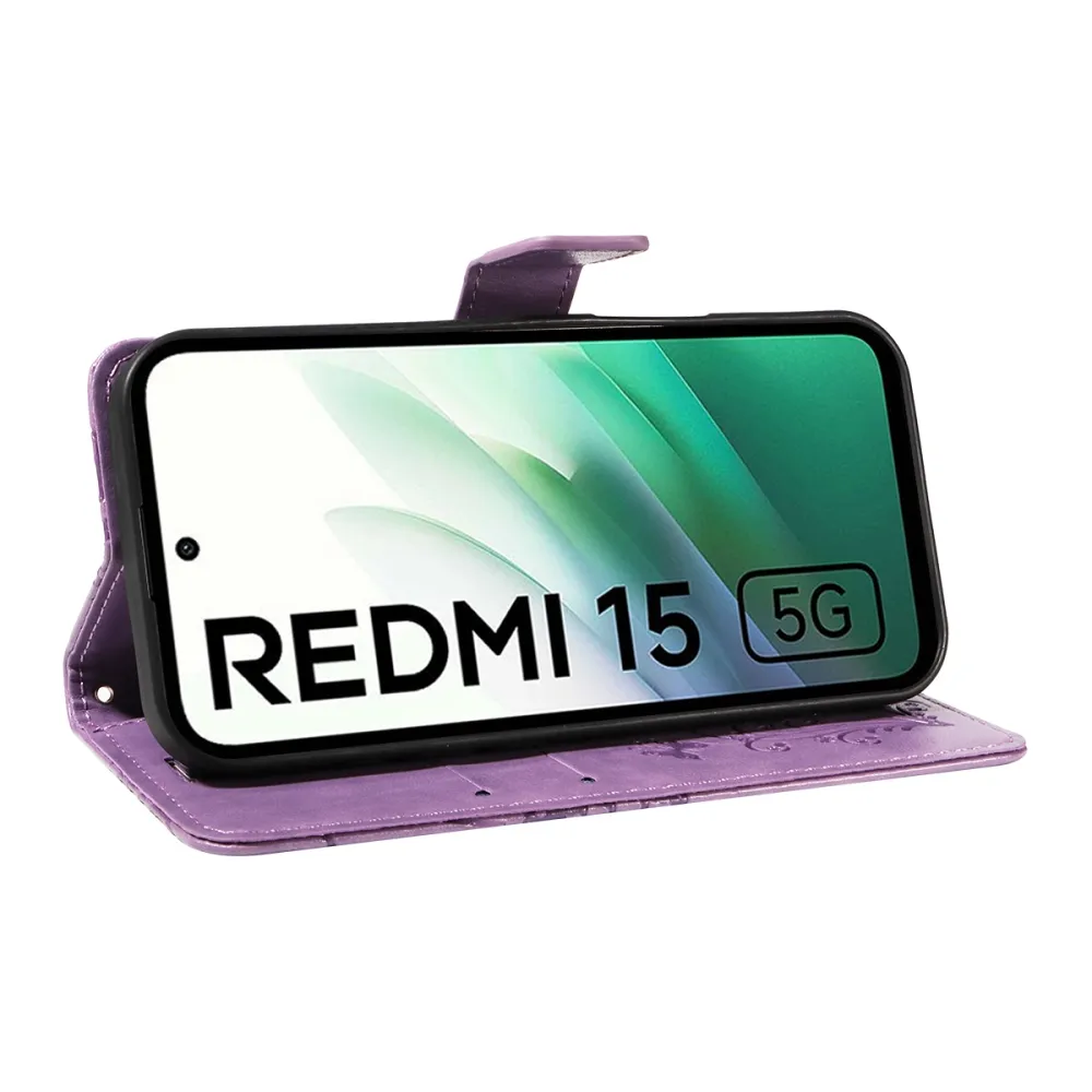Nagy pillangó könyv tok Xiaomi Redmi 15 4G (171mm) - lila
