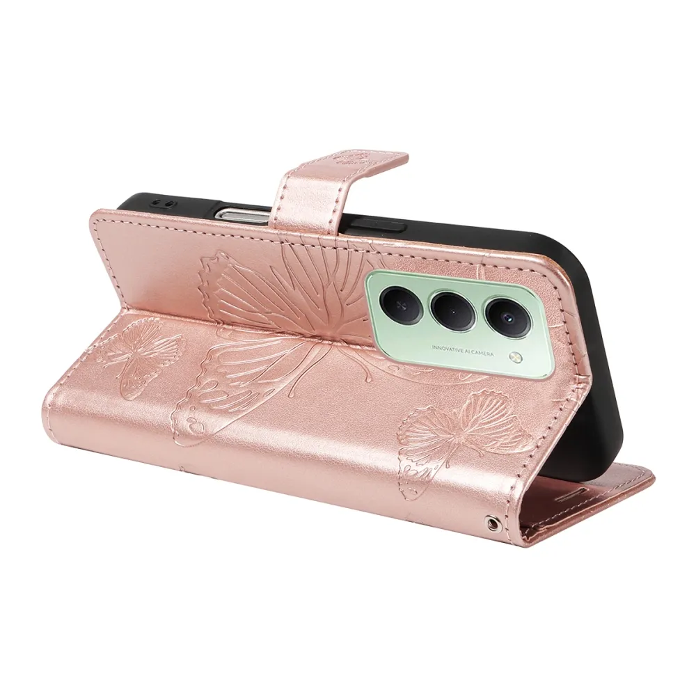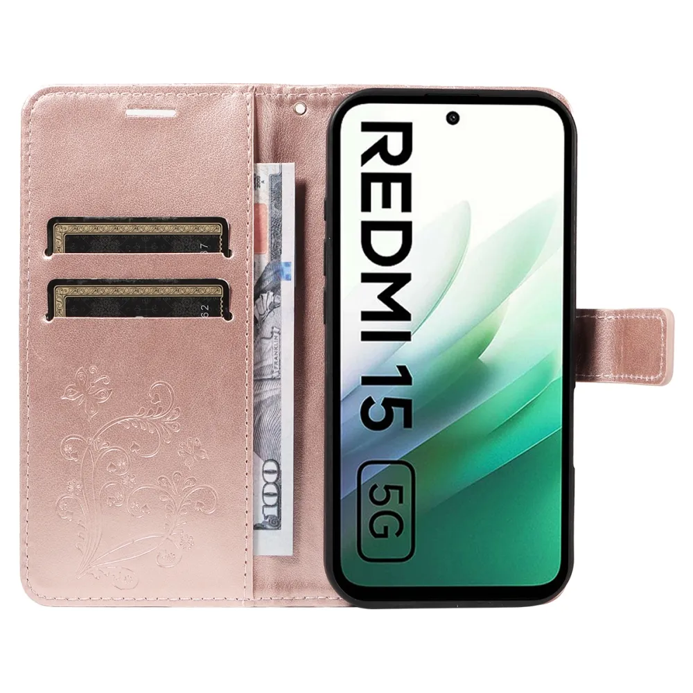 Rózsa arany pénztárca tok Big Butterfly a Xiaomi Redmi 15 4G (171mm) számára