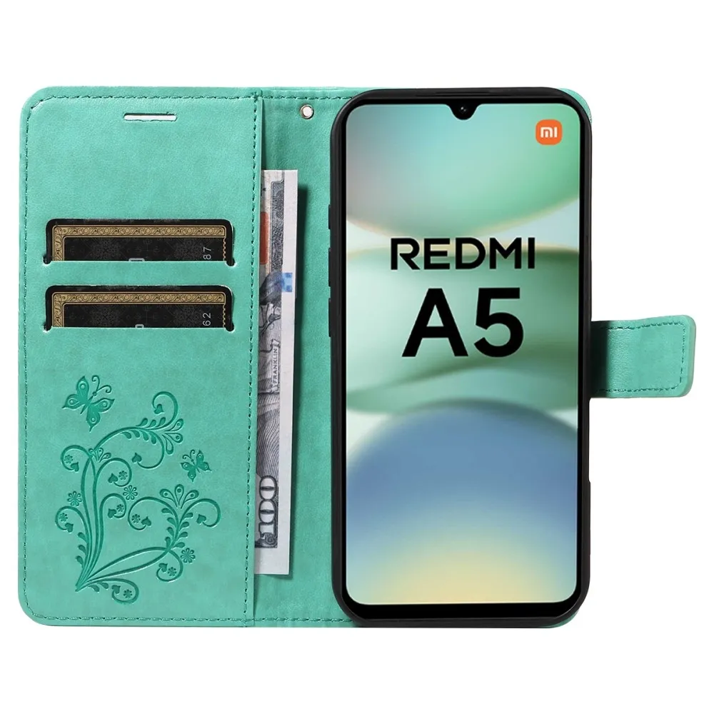 Kék-zöld pénztárca tok Nagy pillangó Xiaomi Redmi A5 (171.7x77.8x8.3mm)