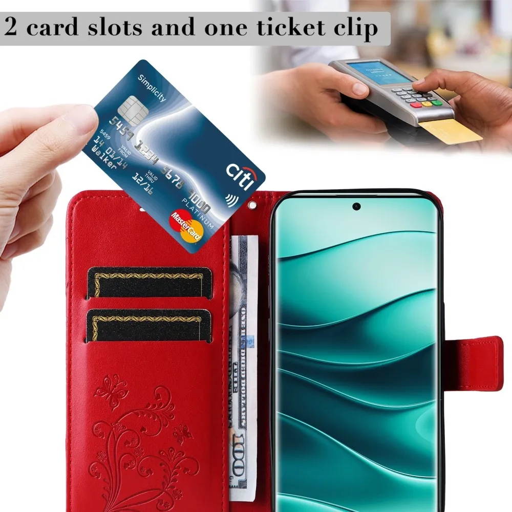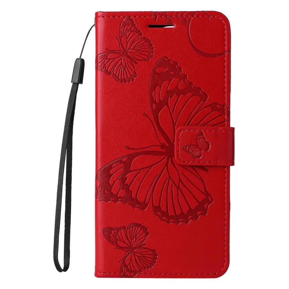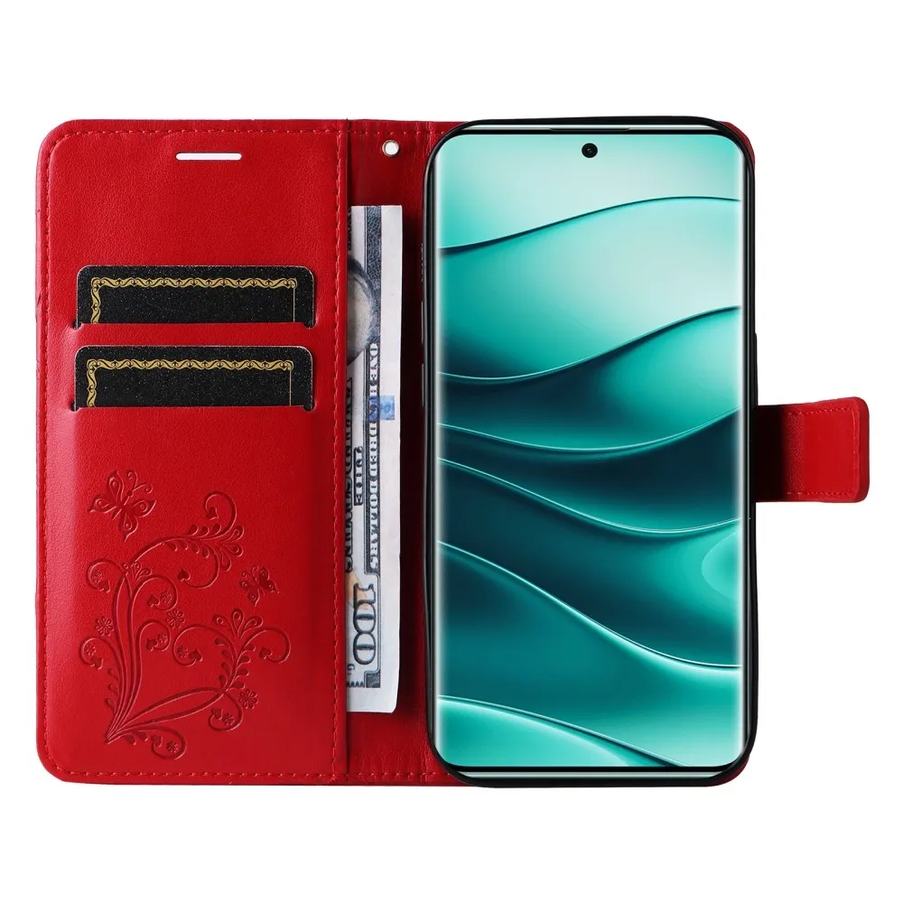 Piros pénztárca tok Nagy pillangó a Xiaomi Redmi Redmi Note 14 Pro 5G/Poco X7 5G/Note 14 Pro+ 5G számára