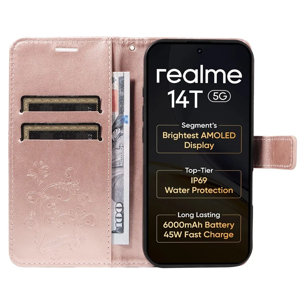 Rózsa arany pénztárca tok Big Butterfly a Realme 14 5G/14T 5G mobiltelefonhoz