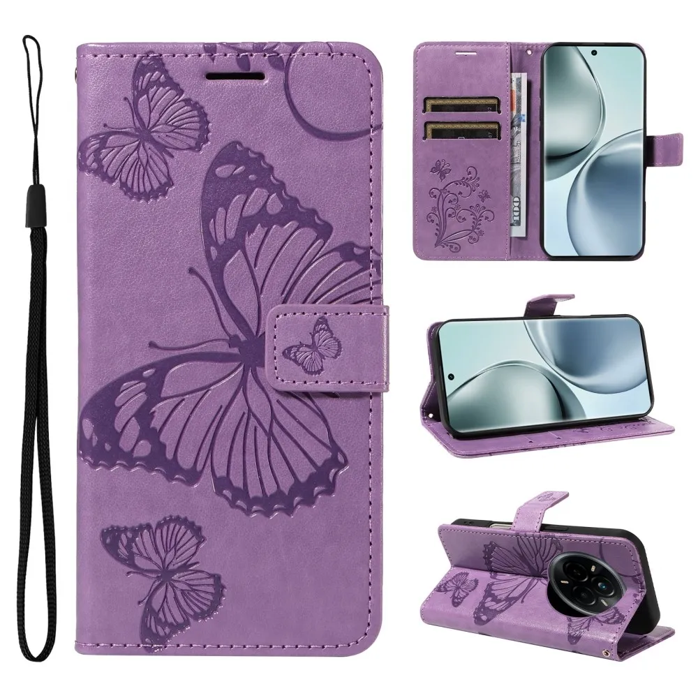 Nagy pillangó könyvtáska a Realme 14 Pro 5G készülékhez - lila