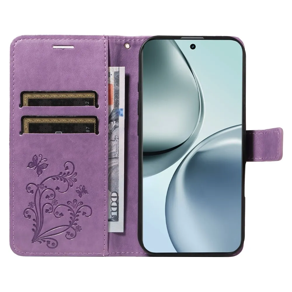 Nagy pillangó könyvtáska a Realme 14 Pro+ 5G számára - lila