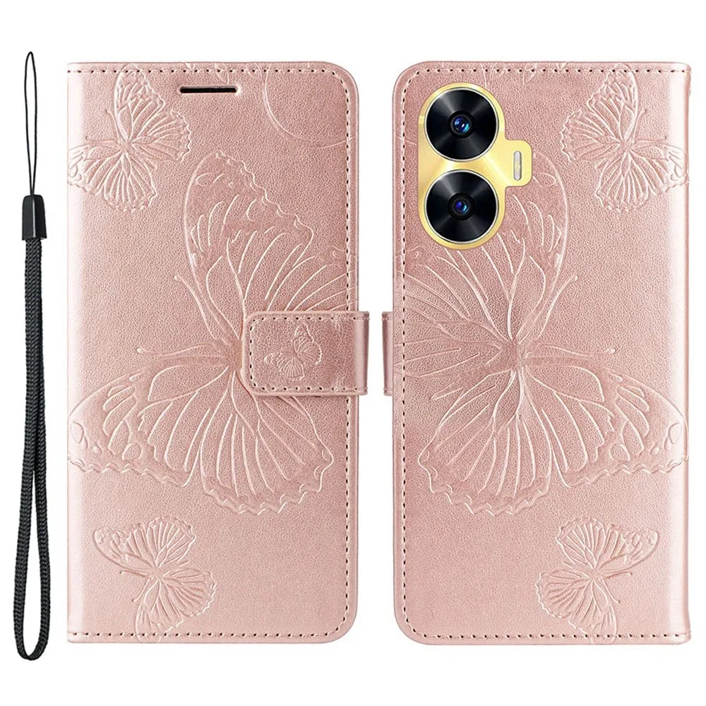 Rózsa arany pénztárca tok Big Butterfly a Realme C55 számára