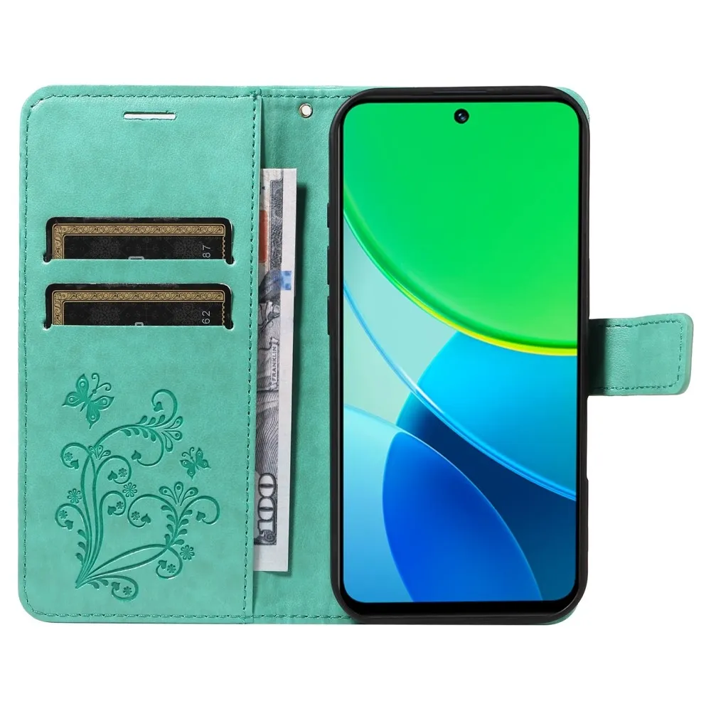 Kék-zöld Nagy pillangó pénztárca tok a Vivo Y19s számára