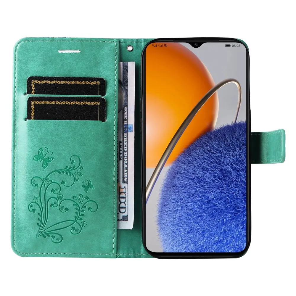 Kék-zöld pénztárca tok Nagy pillangó a Huawei Nova Y61-en