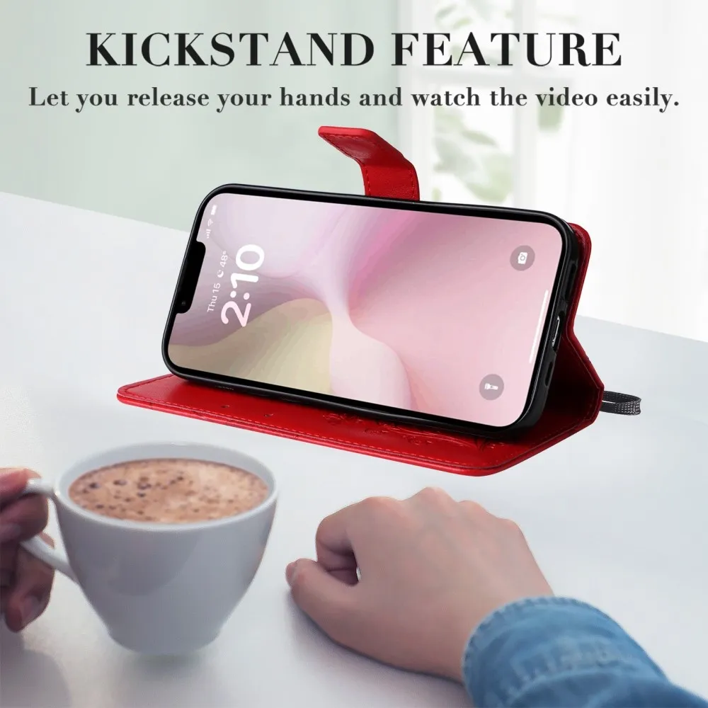Nagy pillangó könyvtáska iPhone 16e készülékhez - piros