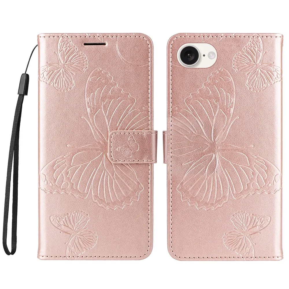 Rózsa arany pénztárca tok Big Butterfly iPhone 16e számára