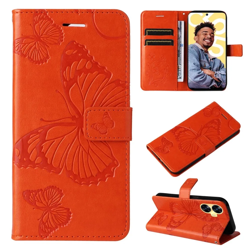 Narancssárga pénztárca tok Nagy pillangó a Realme C55 számára