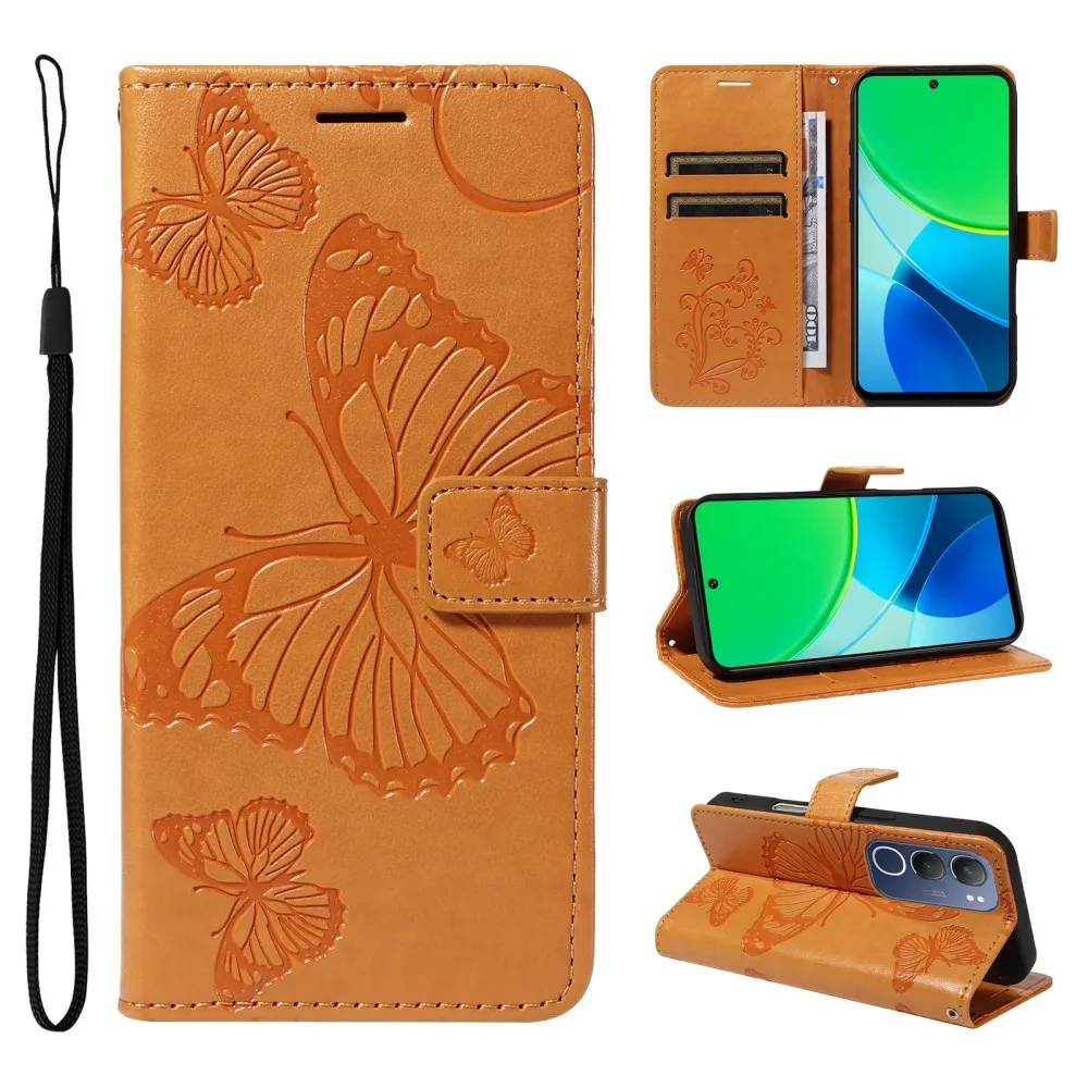 Sárga Big Butterfly pénztárca tok a Vivo Y19s számára