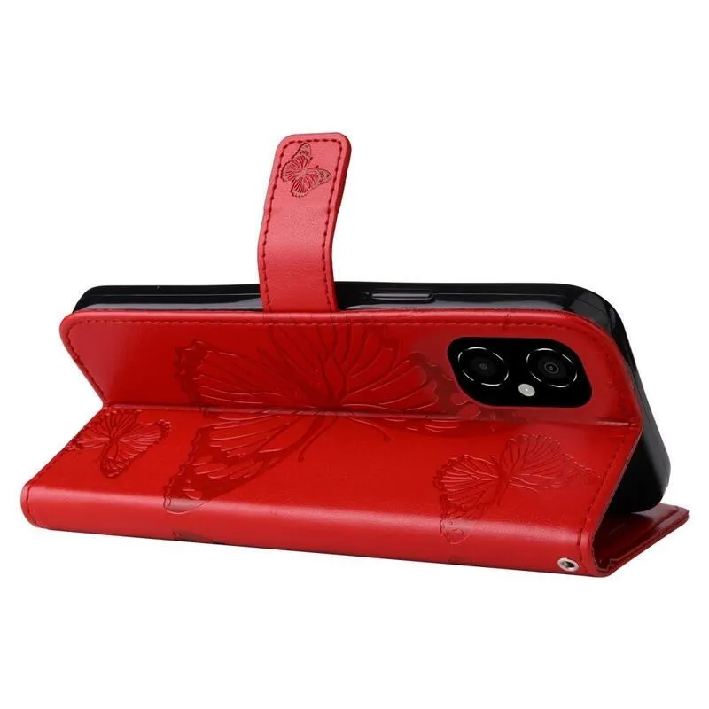 Nagy pillangó piros könyv tok a Xiaomi Poco M4 5G-hez