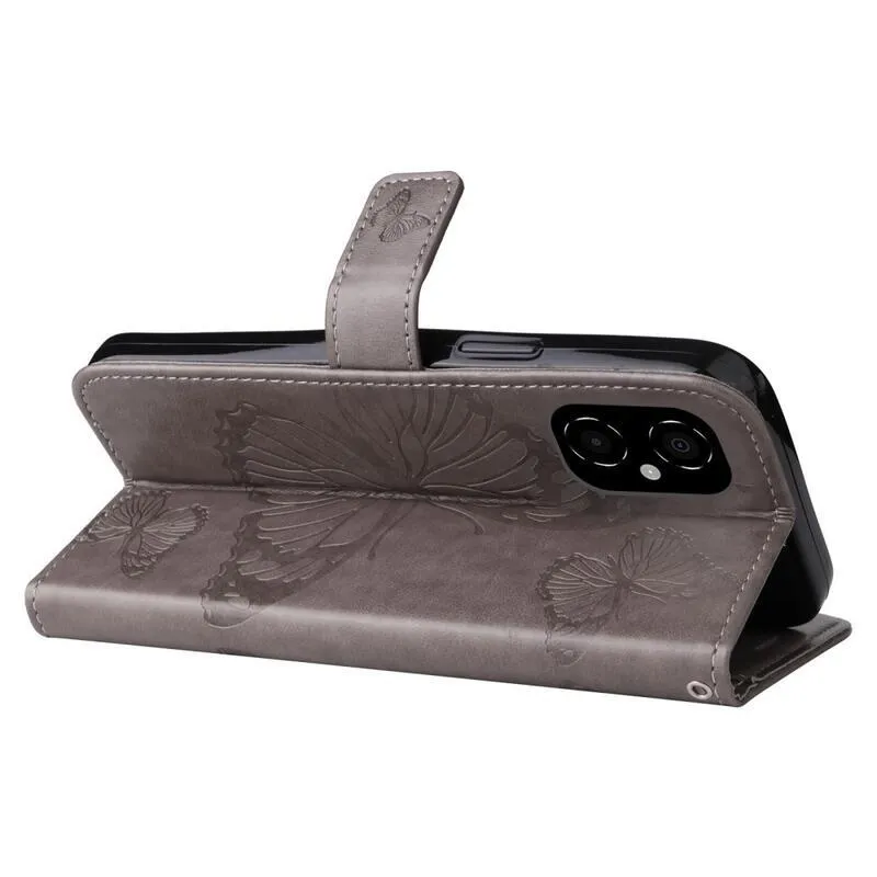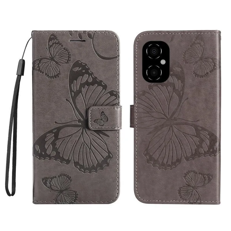 Nagy pillangó szürke könyv tok Xiaomi Poco M4 5G számára