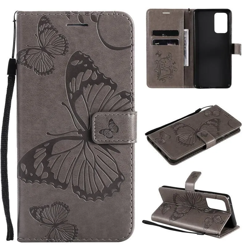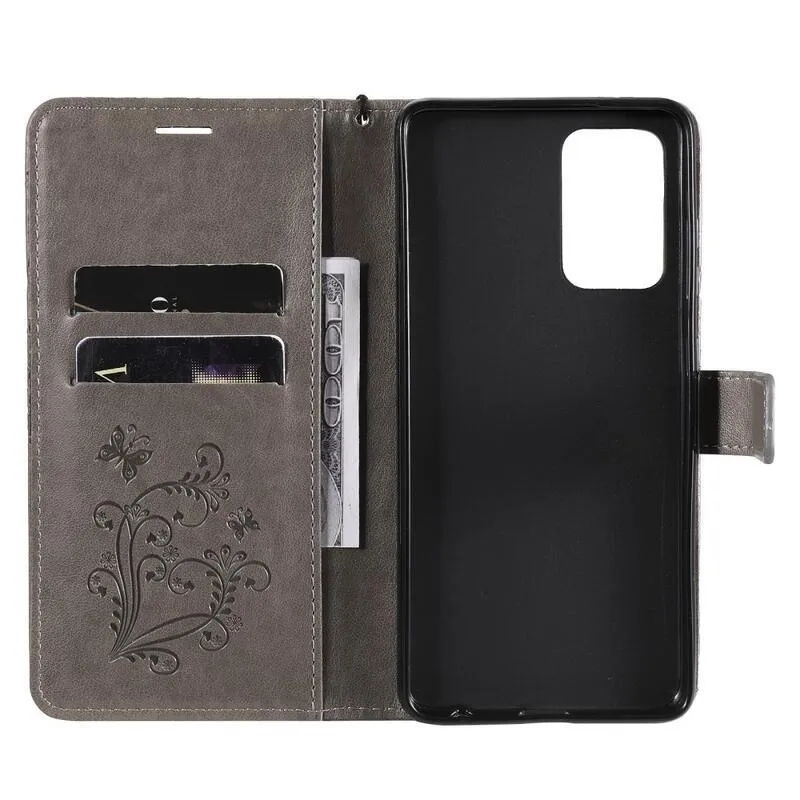 Nagy pillangó szürke könyv tok Samsung Galaxy A52 5G/4G/A52s 5G számára