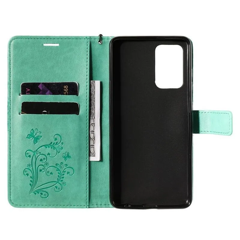 Nagy pillangó PU bőr pénztárca tok Samsung Galaxy A52 5G/4G/A52s 5G - zöld