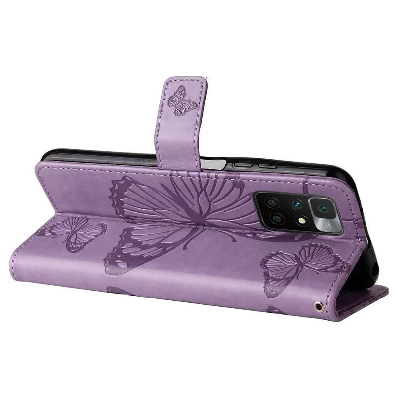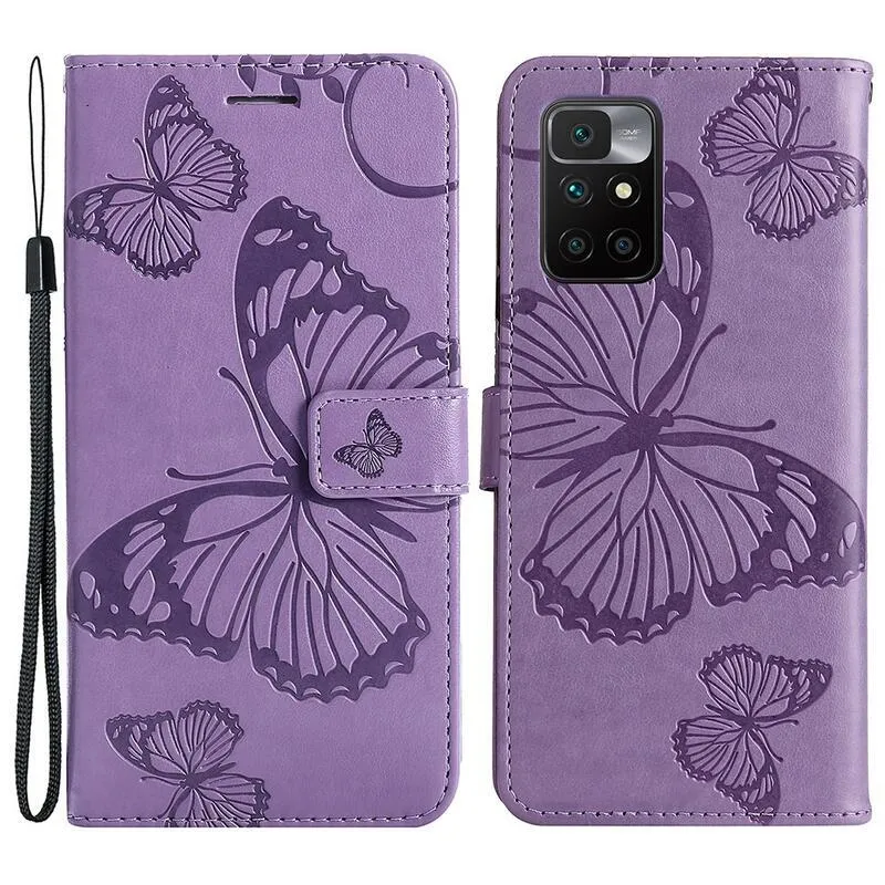 Nagy pillangó PU bőr pénztárca tok Xiaomi Redmi 10/Redmi 10 (2022) - lila