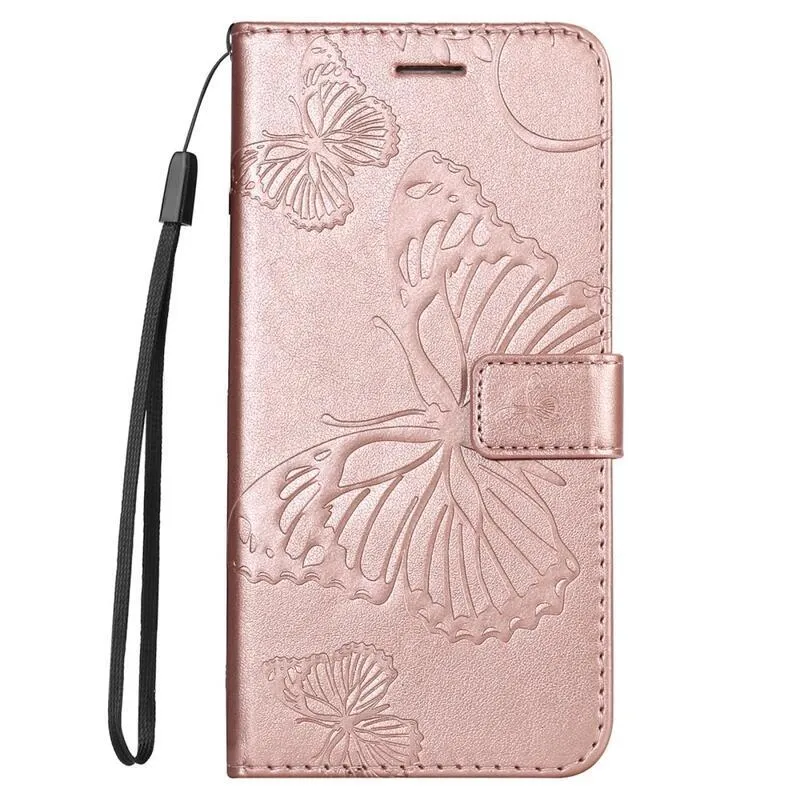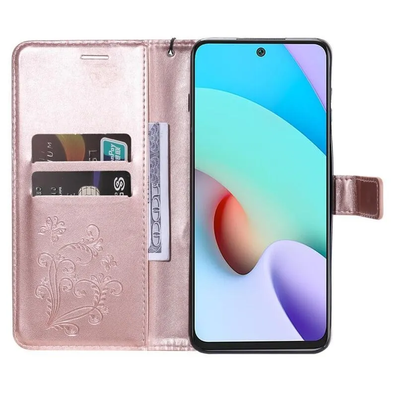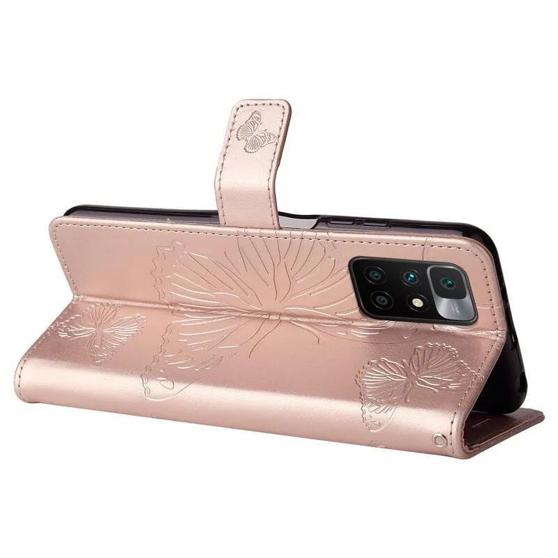 Nagy pillangó PU bőr pénztárca tok Xiaomi Redmi 10/Redmi 10 (2022) - rózsa arany