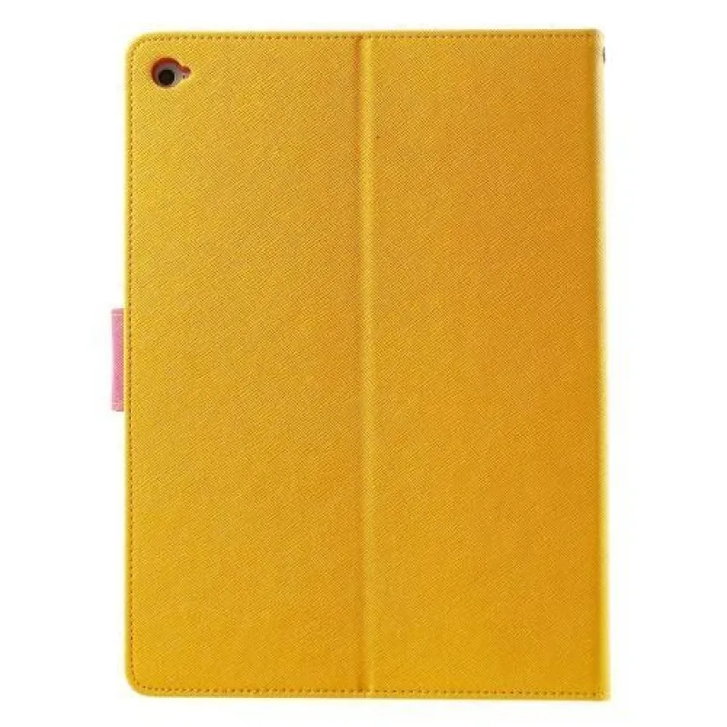 Szép pénztárca tok iPad Air 2 készülékhez sárga-narancs színben, különböző színű mágneses zárral