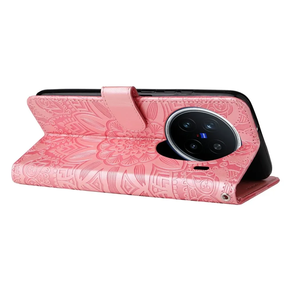 Rózsaszín napraforgó pénztárca tok a Vivo X200 Pro 5G-hez