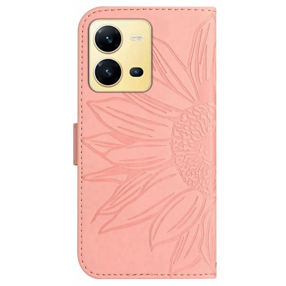 Rózsaszín napraforgó pénztárca tok a Vivo X80 Lite-hoz