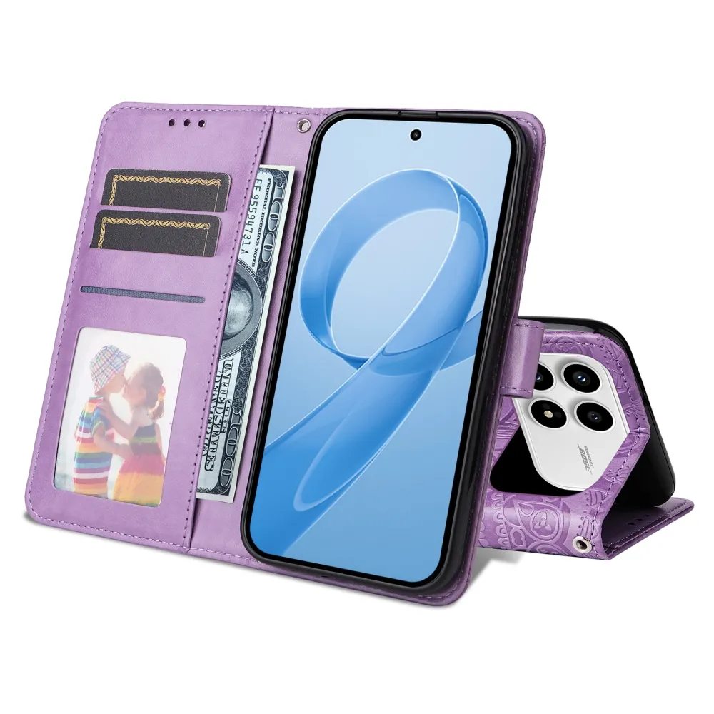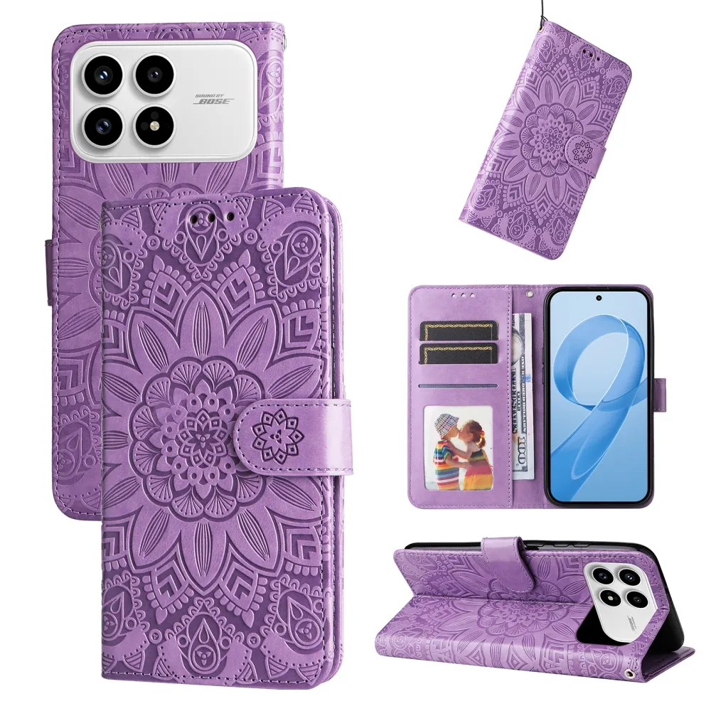 Lila pénztárca tok Napraforgó a Xiaomi Poco F8 Pro 5G számára