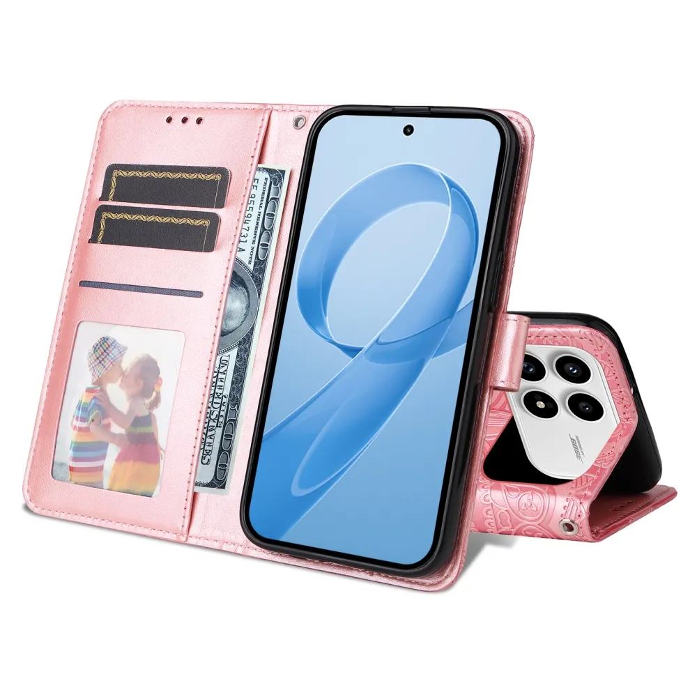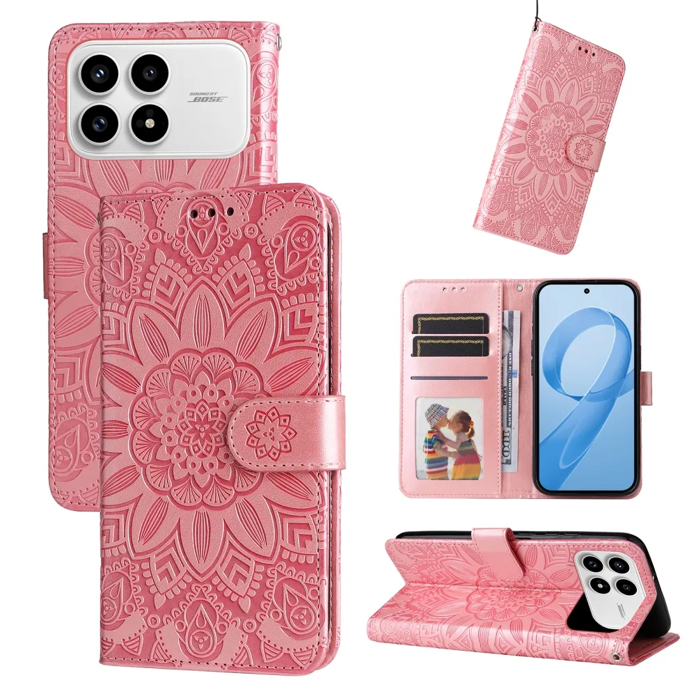 Rózsaszín pénztárca tok Napraforgó a Xiaomi Poco F8 Pro 5G számára