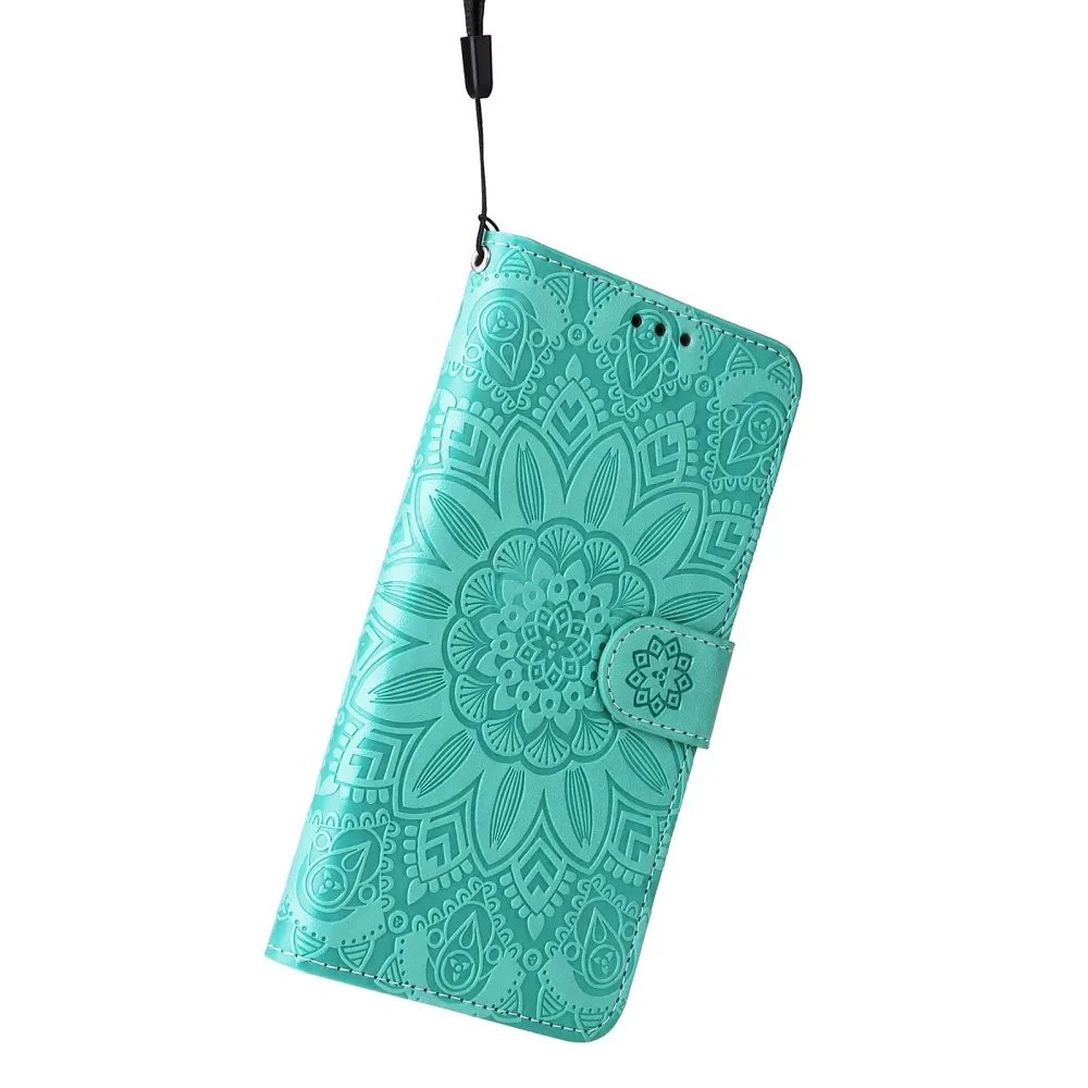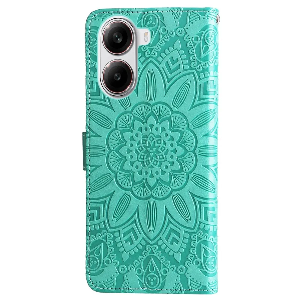 Kék-zöld napraforgó pénztárca tok Xiaomi Poco X7 Pro 5G számára