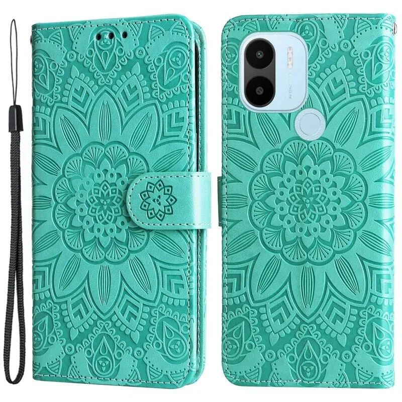 Napraforgó könyv tok a Xiaomi Redmi A1+/A2+ készülékhez - teáskék színű