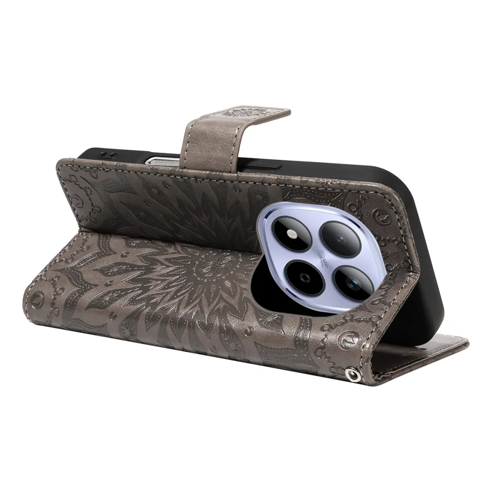 Napraforgó könyv tok a Xiaomi Redmi Note 15 Pro 5G-hez - szürke