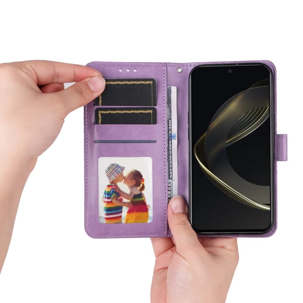 Lila napraforgó pénztárca tok Huawei Nova 12 SE számára