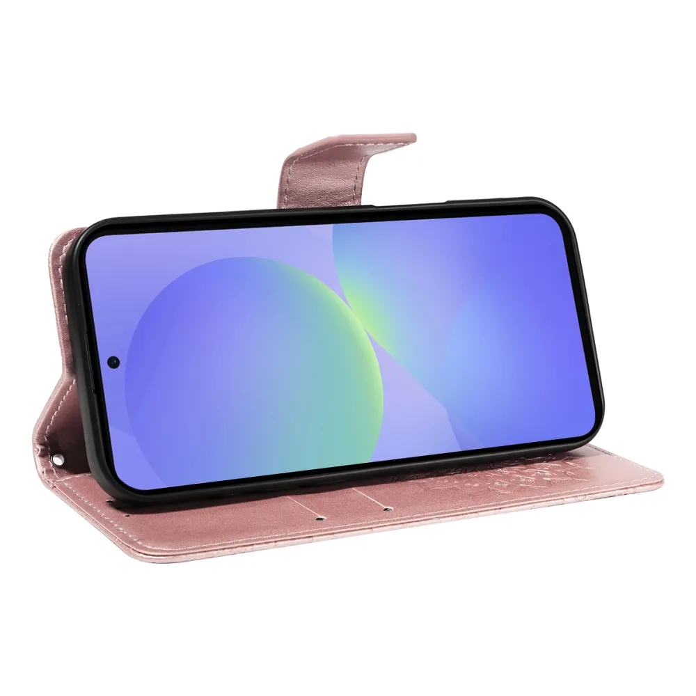 Rózsaszín és arany napraforgó pénztárca tok Samsung Galaxy A37 5G-hez