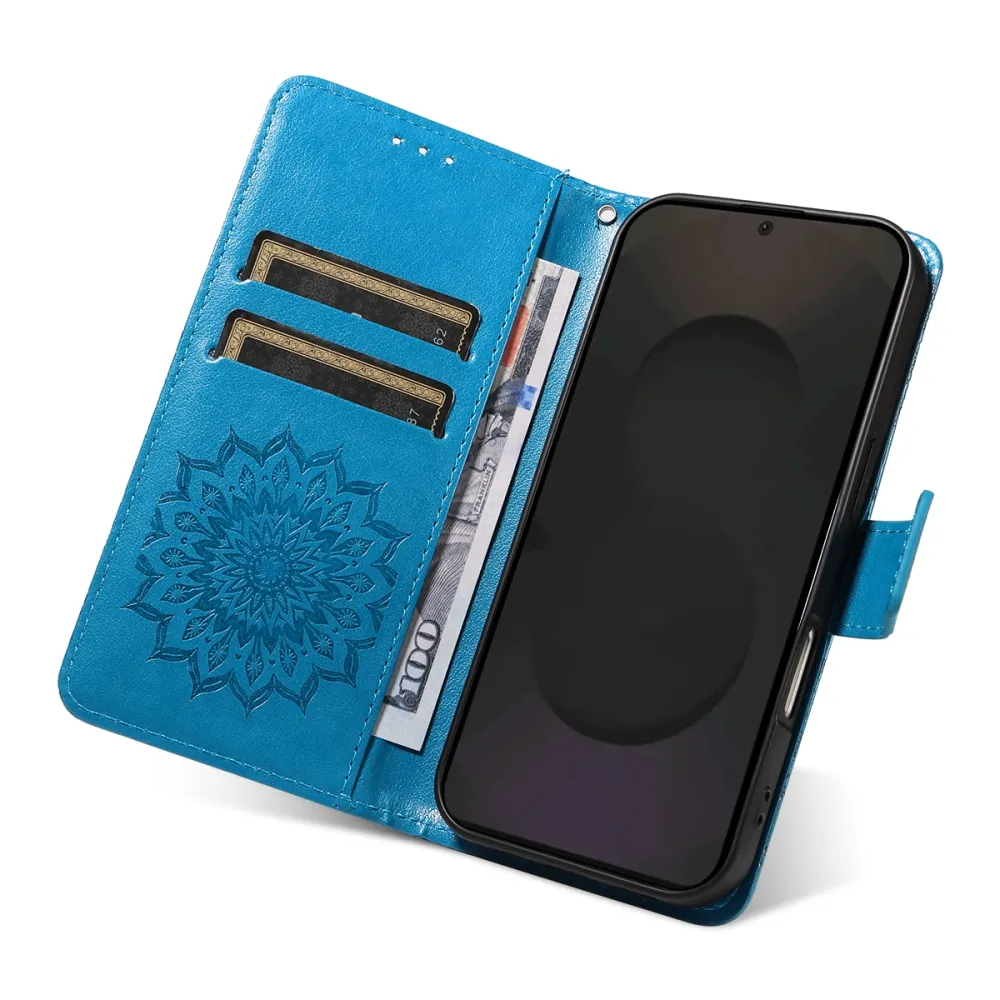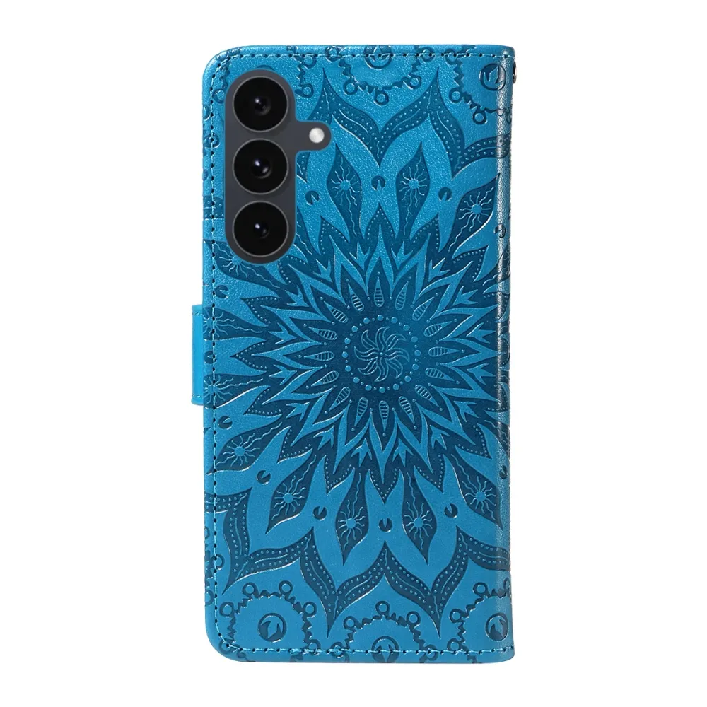 Kék pénztárca tok Napraforgó Samsung Galaxy S25 FE számára